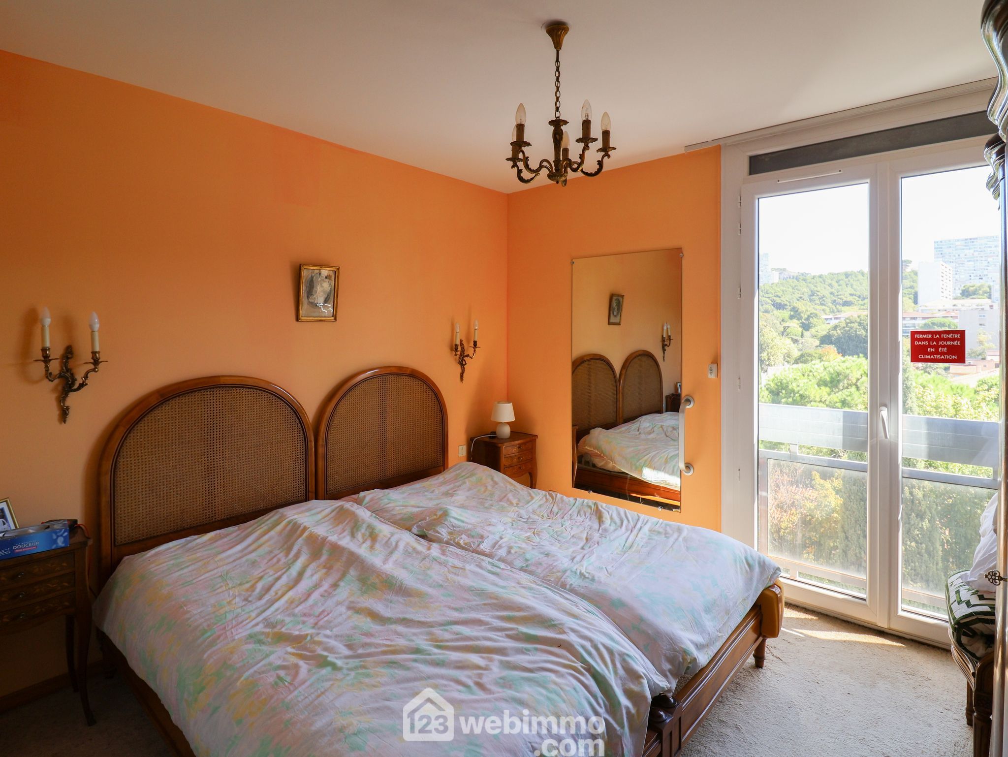 MAZARGUES. En dernier étage exposé SUD. Chemin Joseph Aiguier au sein de l'environnement calme et verdoyant de la résidence le jardin des Hespérides. Appartement de type 3 au 7ème et dernier étage avec ascenseur de 68m2 offrant une très jolie vue dégagée sur le massif des Calanques et la mer. Il se compose d'un vaste séjour que jouxte une cuisine donnant sur une terrasse de 13m2 offrant un bel espace détente et repas. La partie nuit se compose de 2 grandes chambres 13m2 et 12 m2. Une salle de douche complète l'ensemble. Toilettes séparés. Double vitrage, volets roulants électriques dans les chambres. Climatisation réversible dans tout l'appartement. BOX FERMÉ EN SOUS-SOL situé dans la résidence fermée au prix de 20 000€ en sus soit 245 000€ L'ENSEMBLE. Cave. Village de Mazargues et ses commerces, transports proches de la résidence. Charges 145€/mois. Taxe foncière 1844€.