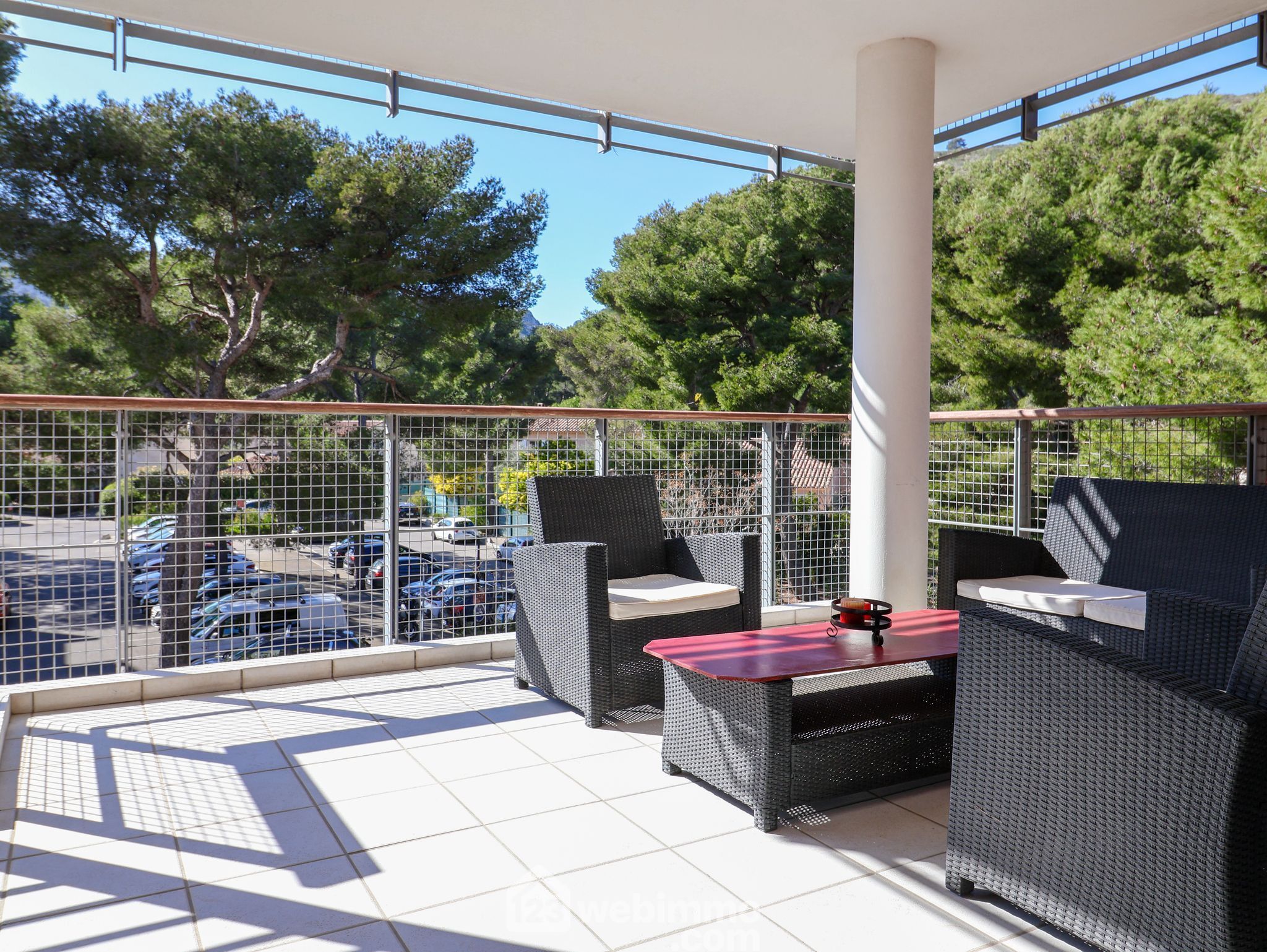 PARC DU ROY D'ESPAGNE, EXCLUSIVITE, au sein de l'environnement boisé d'exception de l'Allée Cervantes, au calme absolu. Dans un petit immeuble de 2007 avec ascenseur, très beau T3 traversant en 2ème étage sur 4 de 69,5 m2 ouvert sur une agréable terrasse de 18m2 exposée au SUD-OUEST offrant une jolie vue dégagée sur le Parc National des Calanques. Il se compose d'un vaste séjour cuisine lumineux de 31m2 avec une cuisjne équipée. Deux chambres de 11m2 et 11,8m2. Nombreux placards. Salle de bain, wc séparés. Double vitrage. PLACE DE PARKING EN SURFACE INCLUSE. BOX SIMPLE EN SOUS-SOL FERME EN SUS soit 339 900€ l'ensemble. Résidence fermée au sein d'une allée close. Charges 148€/mois. Visite virtuelle disponible.