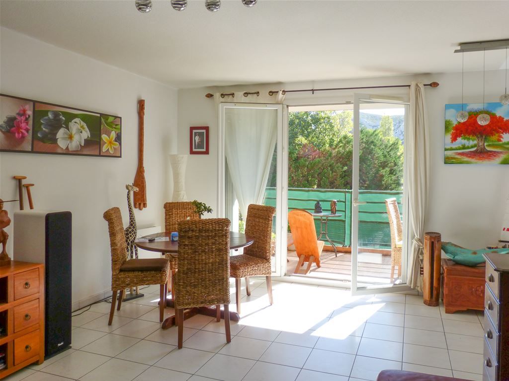 Dans une résidence récente au calme absolu. Beau type 3 de 70 m2 ouvert sur une grande terrasse de 12m2 en très bon état en 2 ème étage sur 5 avec box en sous-sol. Séjour cuisine de 39m2 donnant sur une confortable terrasse exposée au Sud-Est. Cuisine ouverte équipée, 2 chambres de 12,4 et 11,2 m2. Salle de bains. Double vitrage. Résidence fermée, BOX EN SOUS-SOL FERME INCLUS. Charges 110€/mois. Localisation exacte, plus de photos visite virtuelle sur l'agence 123webimmo Marseille 9.