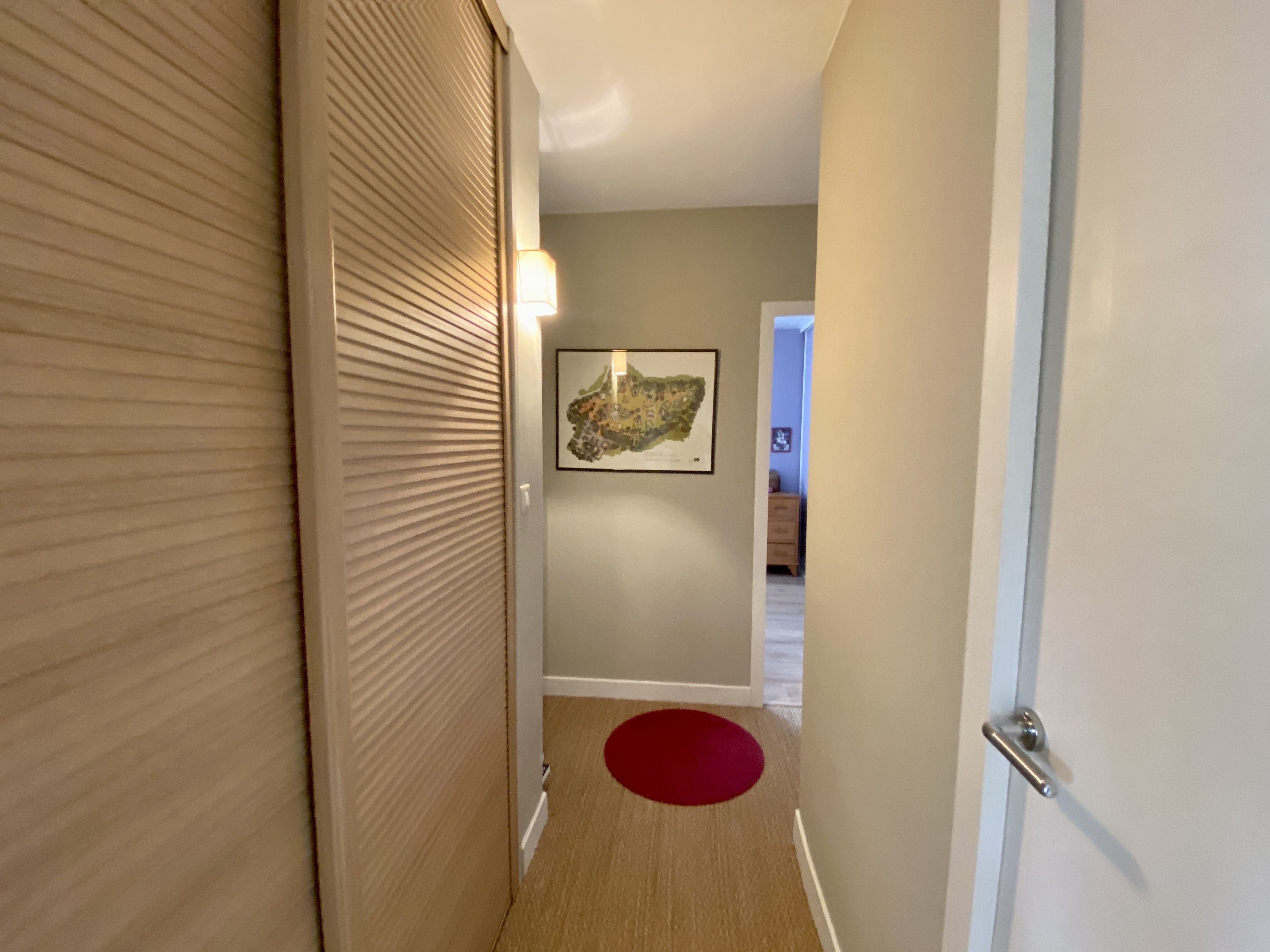 L'appartement est bien agencé, il se compose d'une entrée avec rangement donnant de part et d'autre sur un séjour avec petit balcon (exposé Sud-Ouest) et sur une cuisine fermée et aménagée.