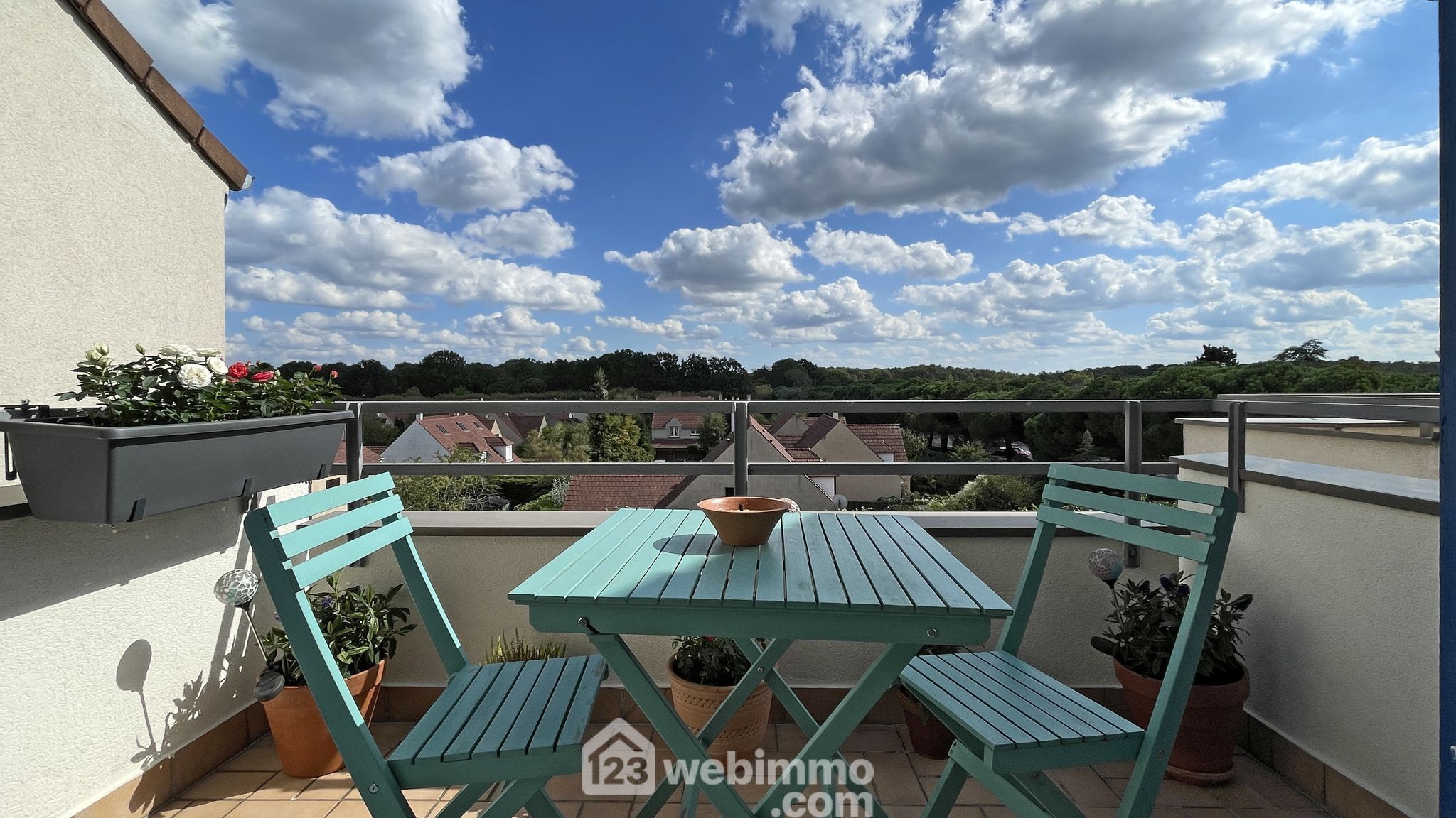 Lumineux appartement offrant de très beaux volumes et un balcon avec vue dégagée. Grand séjour, cuisine dînatoire de 14m2, deux chambres avec penderie, salle de bain et wc séparé. Nombreux rangements, aucun travaux. Parking en sous-sol et nombreux commerces au pied de l'immeuble. Secteur clame et verdoyant, RER A à 10mn en bus.