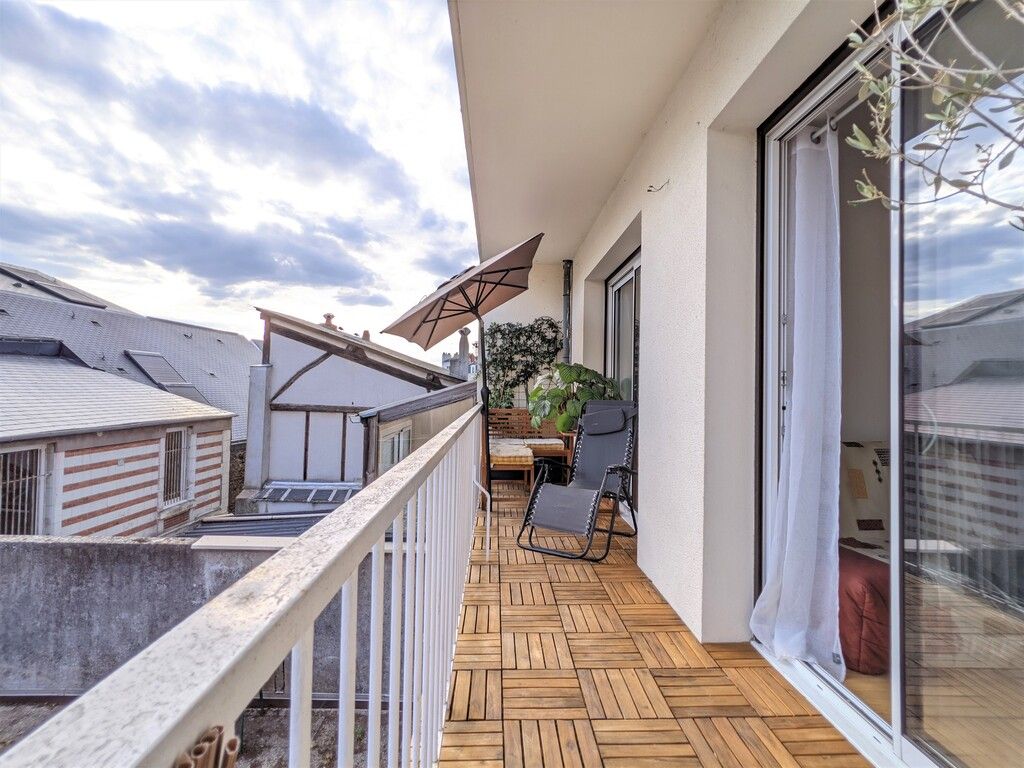 49000 - Appartement traversant et rénové dans une petite copropriété de 3 logements. Commerces, bus et tram à proximité immédiate. Entrée avec placards, cuisine aménagée et équipée de 9.7 m² installée en 2021, salon/séjour de 31.4 m² avec accès sur loggia exposée Nord-Est et balcon exposé Sud-Ouest. Espace nuit composé de deux chambres de 11.7 et 10 m², les chambres bénéficient d'un accès sur le balcon, WC séparés, salle de douche avec meubles de rangement. Menuiseries double vitrage avec volets roulants électriques, ravalement de façade récent. Stationnement sécurisé couvert en RDC de la résidence avec borne de recharge pour véhicule électrique. Faibles charges de copropriété. Emplacement de premier choix pour cet appartement dans l'hyper centre.