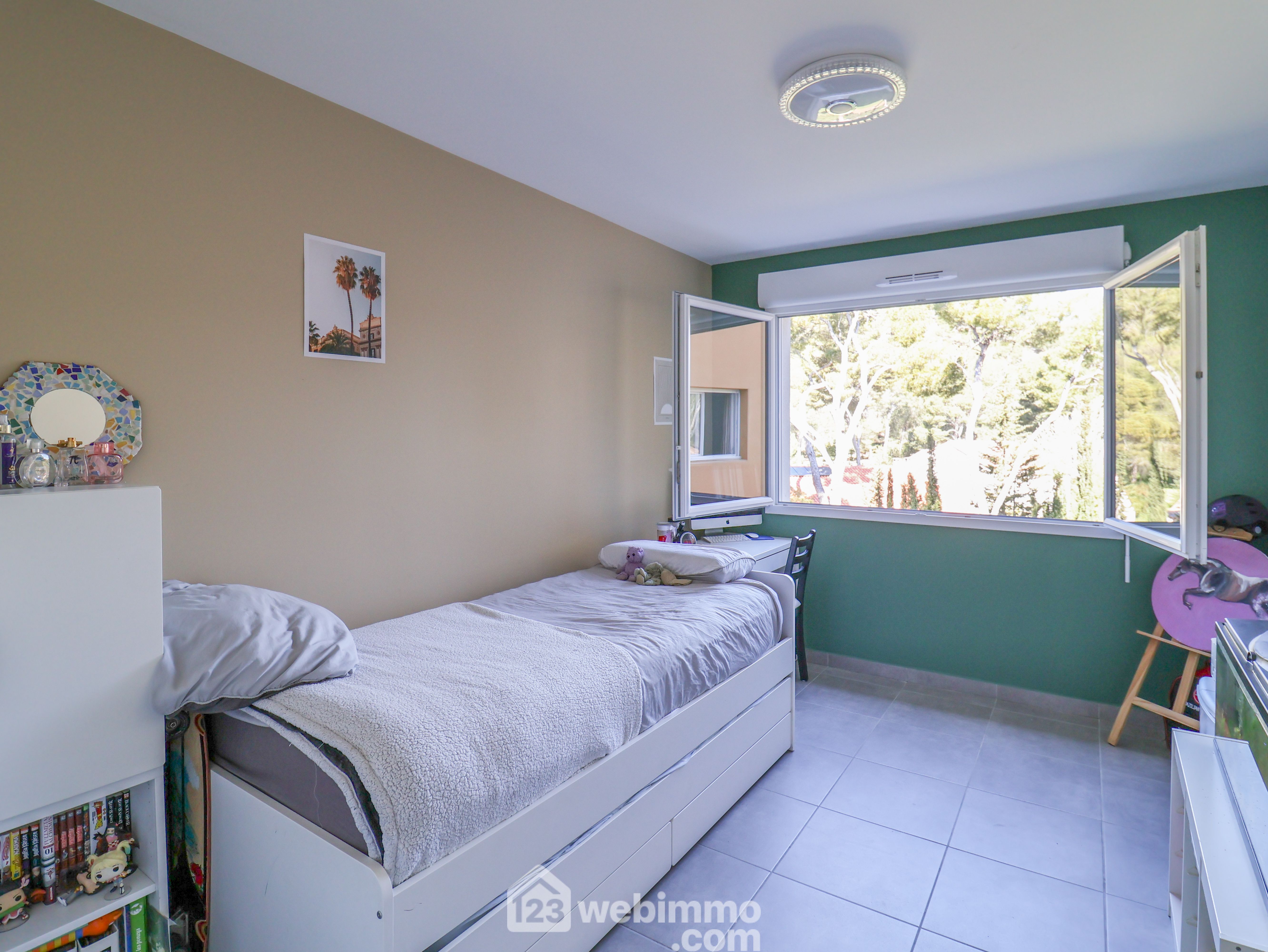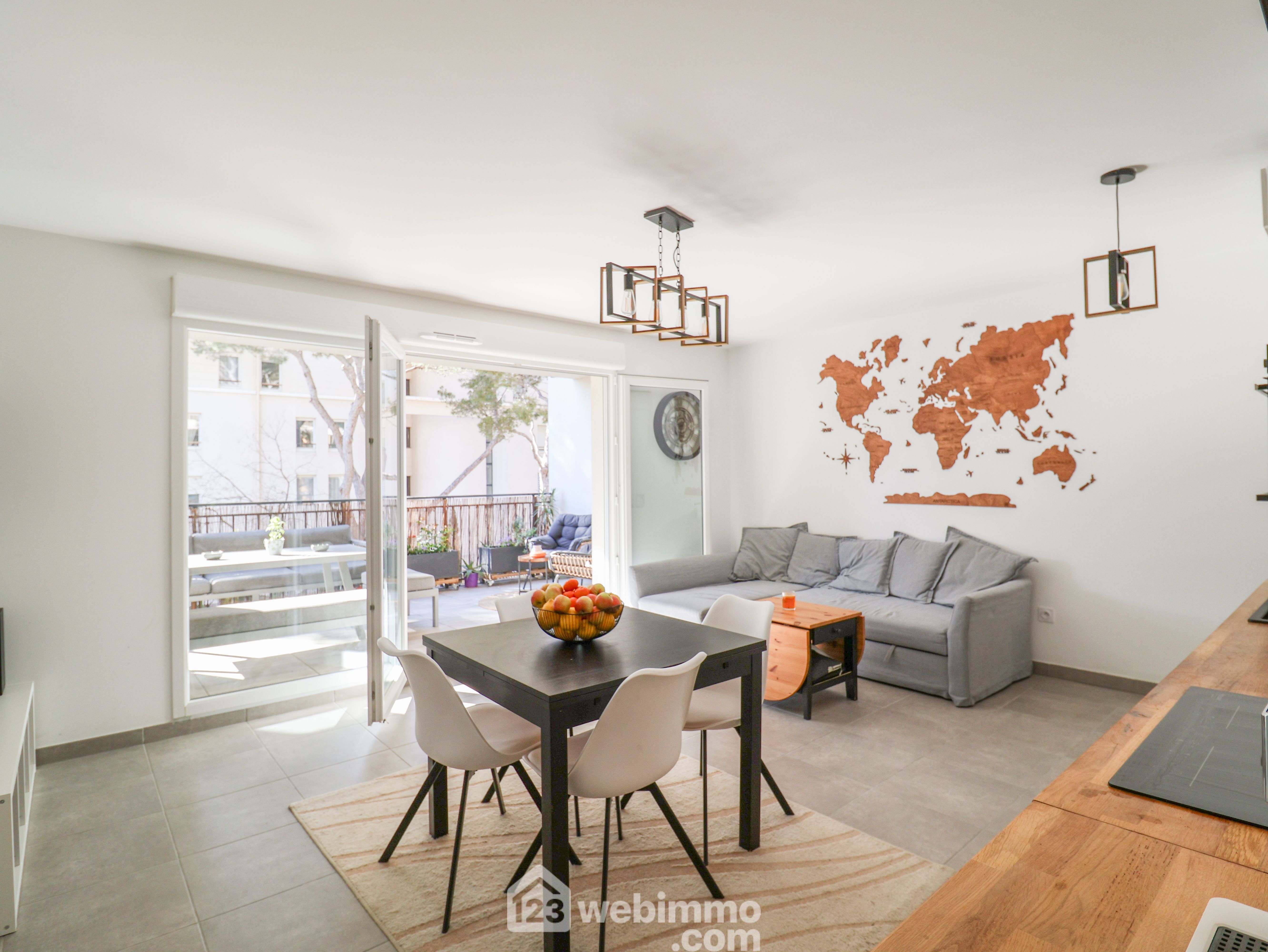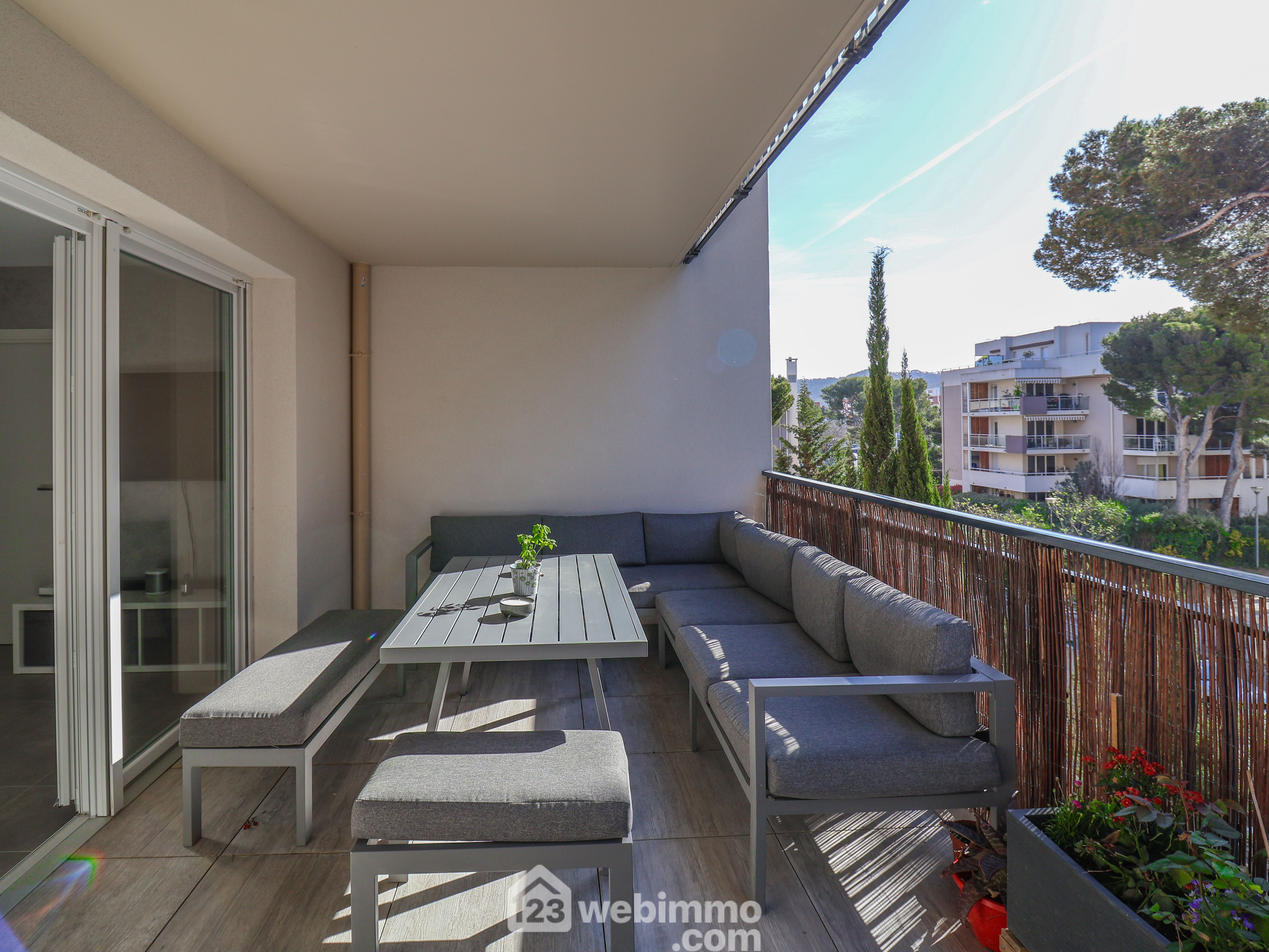 PARC DU ROY D'ESPAGNE. Au sein de l'environnement boisé de l'Allée Cervantes, au calme absolu, au pied du Parc national des Calanques. Dans un petit immeuble de 2020 avec ascenseur, très beau T4 traversant en 3ème étage sur 5 de 77m2 ouvert sur une agréable terrasse de 15m2 exposée au SUD-EST. Il se compose d'un séjour cuisine de 24m2 avec une cuisIne équipée. La partie nuit se compose de 3 vastes chambres 12, 12m2 et 11m2 avec placards dont une parentale avec salle d'eau avec wc. Une salle de bain et un wc séparé complètent l'ensemble. Double vitrage. BOX DOUBLE FERME EN SOUS-SOL EN SUS POUR 25 000€ soit 360000€ le tout. Résidence fermée au sein d'une allée close. Charges 157€/mois mois eau chaude comprise. Visite virtuelle disponible, 20photos sur 123webimmo 9ème.