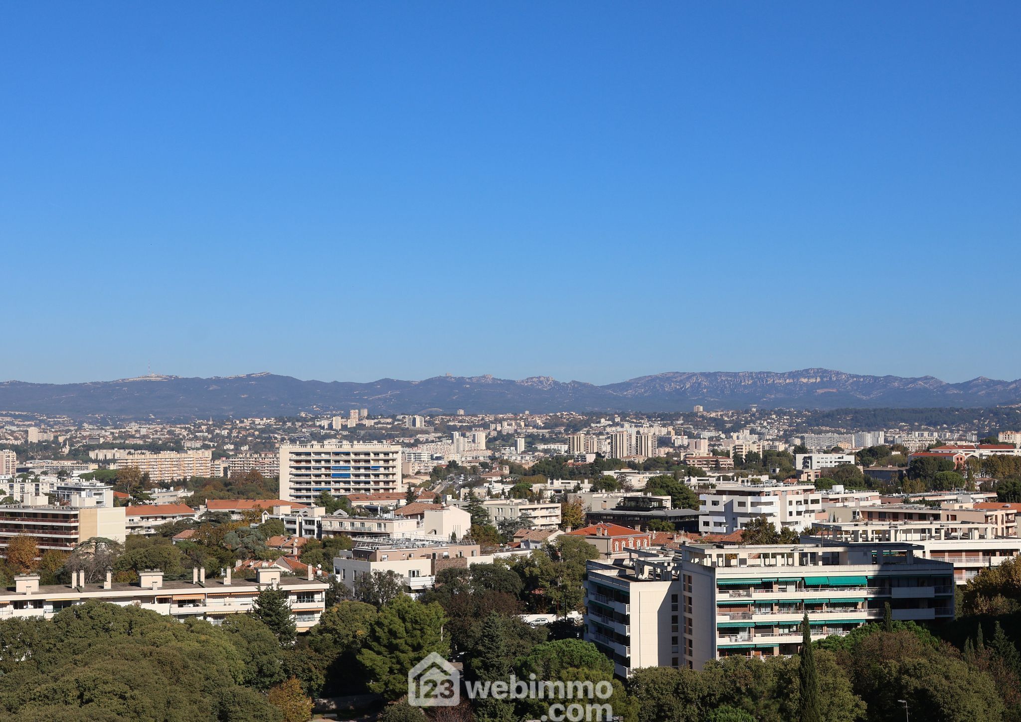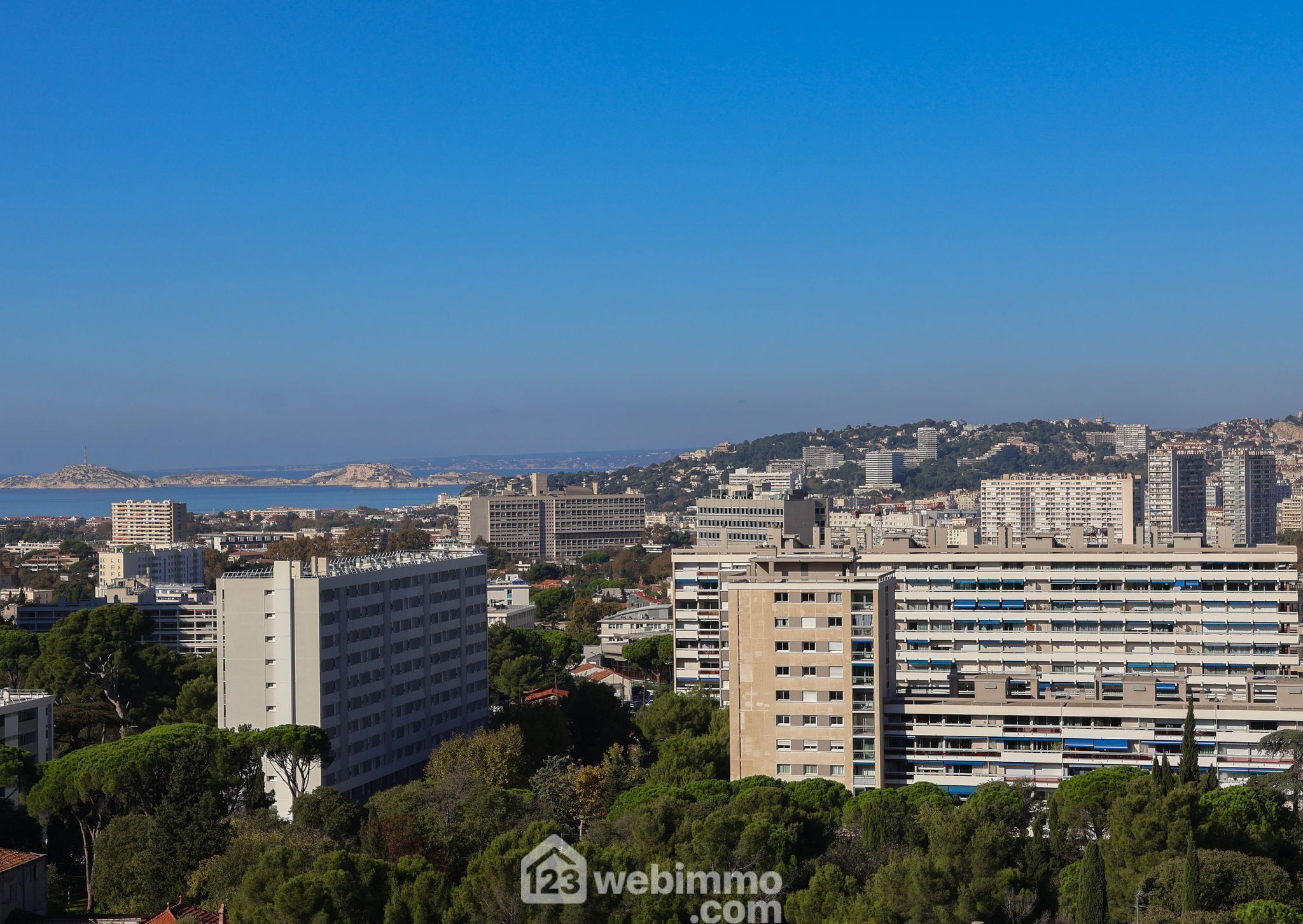 SOUS OFFRE. LE CABOT. EXCLUSIVITE. Au sein du parc boisé de la résidence Allée des pins au calme absolu. Bel appartement traversant de type 3 de 77m2 aux très belles vues mer sur les îles du Frioul et colline. Il se compose d'un séjour avec une cuisine semi ouverte donnant sur un large balcon. La cuisine équipée de 12m2 offre un bel espace repas. La partie nuit se compose de 2 grandes chambres de plus de 11m2 dont une dispose d'un balcon. Une grande salle de douche complète l'ensemble. Toilettes séparés. Dressing. Climatisation réversible, double vitrage aluminium, volets roulants électriques. Porte blindée. Ascenseur. Fibre. Stationnement aisé dans la résidence fermée. Cave. Charges eau chaude et chauffage compris, 290€/mois. BOX FERME EN SOUS-SOL EN SUS POUR 20 000€ soit 259 500€ l'ensemble. Village du Cabot, commerces, transports dont le futur tramway reliant le centre ville. Visite virtuelle et plan disponible.