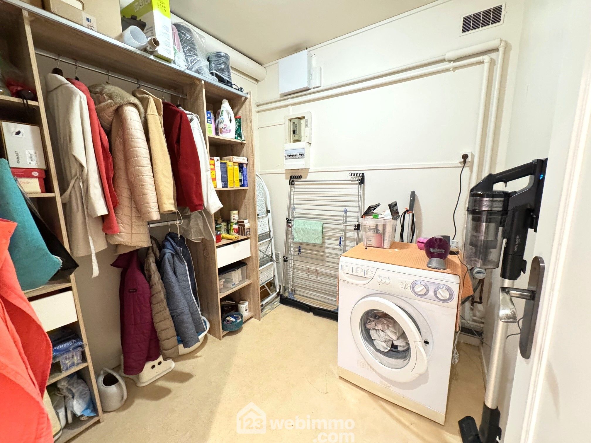 L’appartement dispose également d’un cellier spacieux, idéal pour vos rangements, de deux chambres confortables offrant de beaux volumes, et d’un dressing astucieux pour optimiser l’organisation de vos affaires. La salle d’eau, élégante et pratique, est complétée par un WC indépendant.