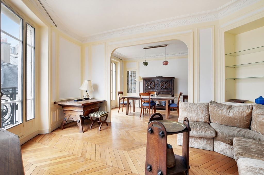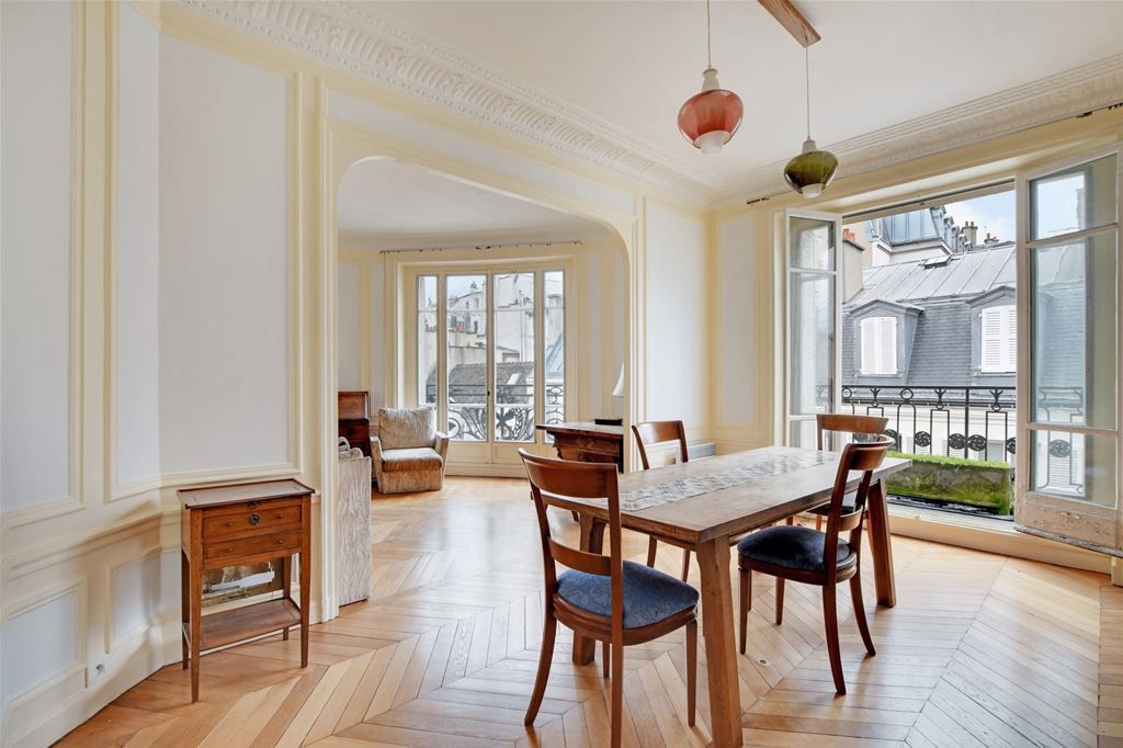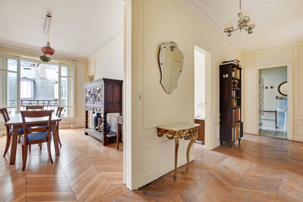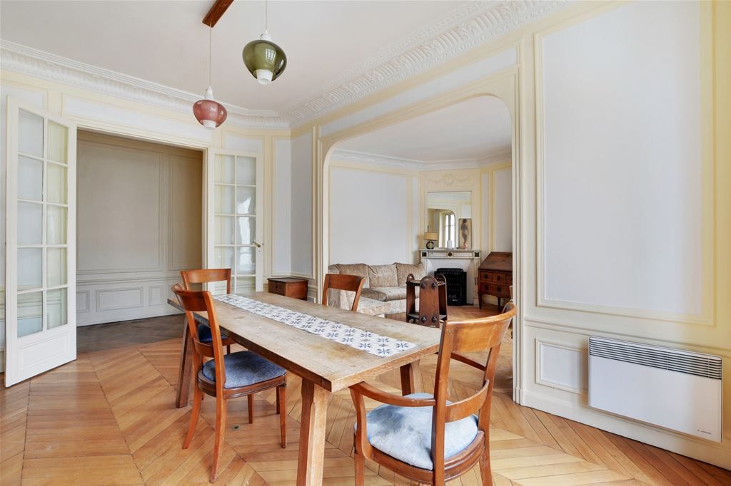 Dans une rue calme, au 5ème étage d'un bel immeuble Pierre de Taille ravalé, appartement 4 pièces (82,4 m²) + chambre de service (8,4 m²) au 6ème/dernier étage. En double exposition (Est/Ouest), appartement lumineux comprenant 1 séjour double, 2 chambres, cuisine, salle de bains et wc séparé. Nombreux rangements. Belle hauteur sous plafond. Parquet point de Hongrie. Moulures. Cheminées. Au 6ème étage (accès escalier), une chambre de service avec point d'eau. Au sous-sol, grande cave sécurisée.
