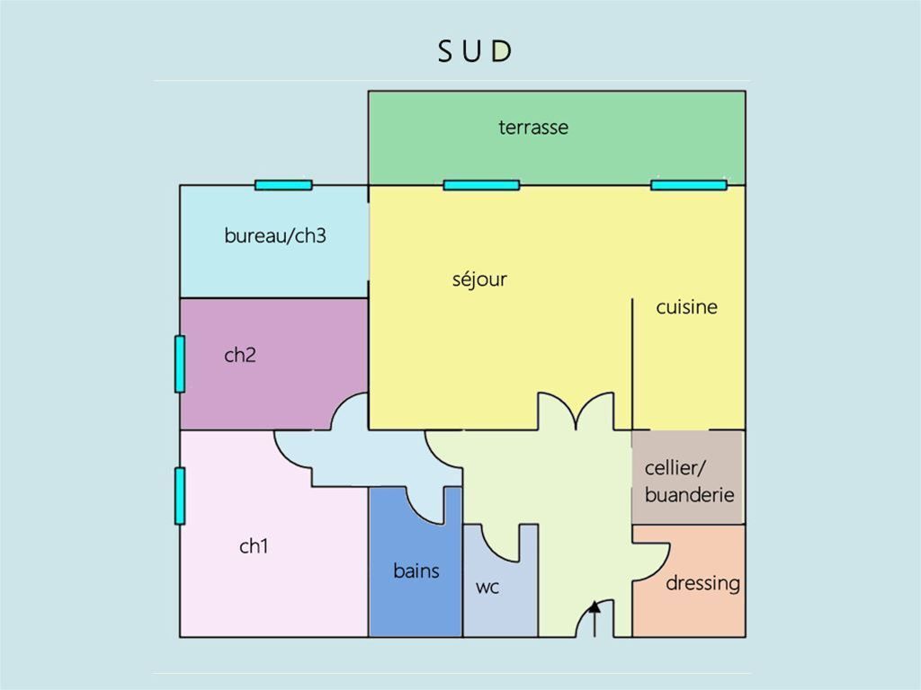 Beau T4 de 85m2 exposé SUD avec terrasse et grand garage. Au calme et sans vis à vis.