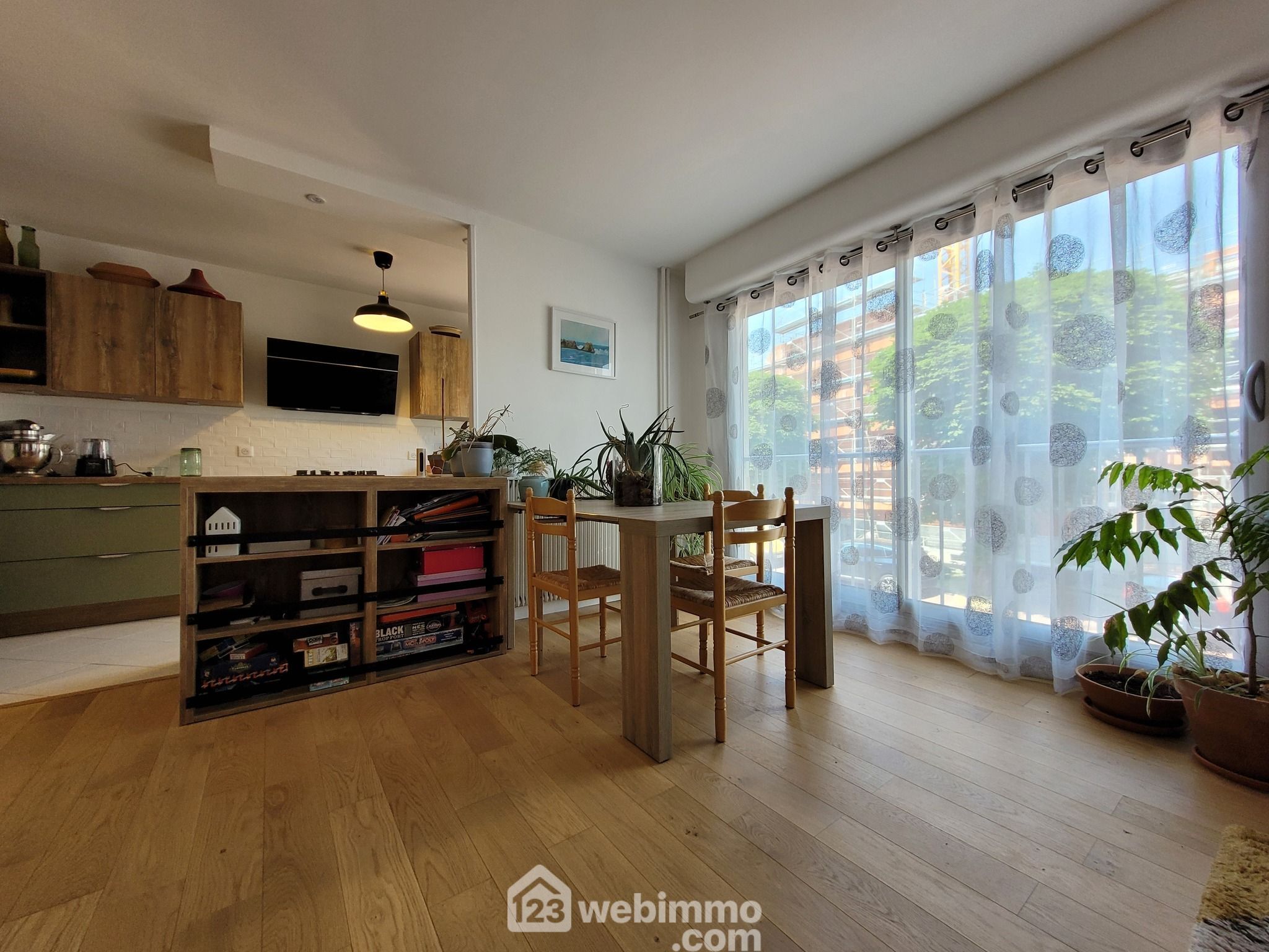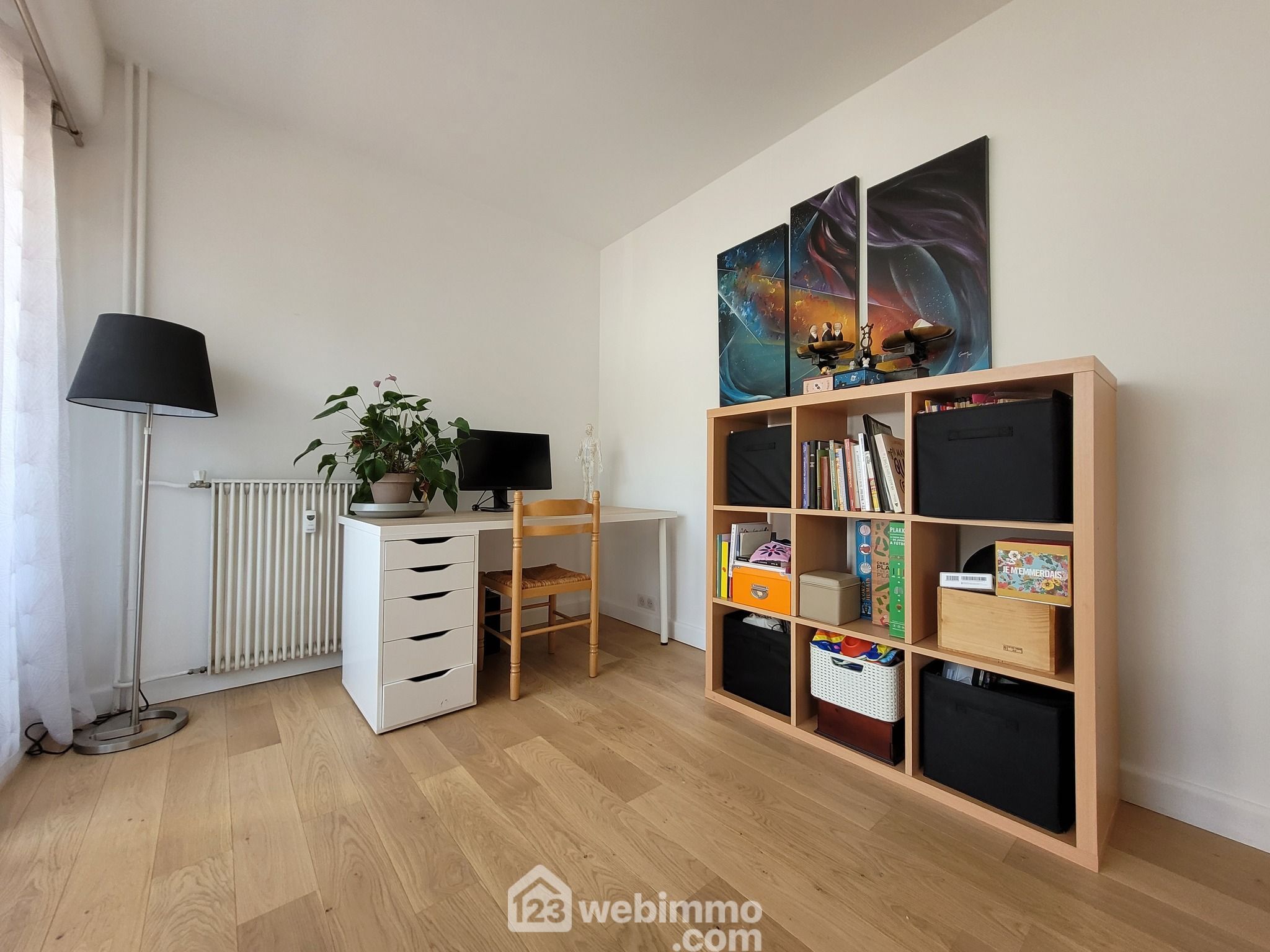 Dans une résidence avec ascenseur, un appartement traversant de 86m², en excellent état, prolongé par 2 balcons. Convivial grâce à sa réception de 40m² environ (séjour double + cuisine équipée US au design contemporain) prolongé par un balcon. Lumineux grâce aux grandes baies vitrées du séjour et son absence de vis-à-vis direct. Fonctionnel grâce à ses nombreux rangements : entrée (10m²) avec vestiaire, dressing, buanderie. Deux chambres (12 et 11m²) dont une avec un balcon sans vis-à-vis. Salle de bains et WC séparé. Au sous-sol, un parking et une cave privatifs. Prestations de qualité (nombreux travaux réalisés depuis 2019). Quartier recherché pour sa proximité avec les commerces, les transports (tram T10 à 400m, bus à 200m, RER B) et les loisirs ainsi que pour sa carte scolaire.