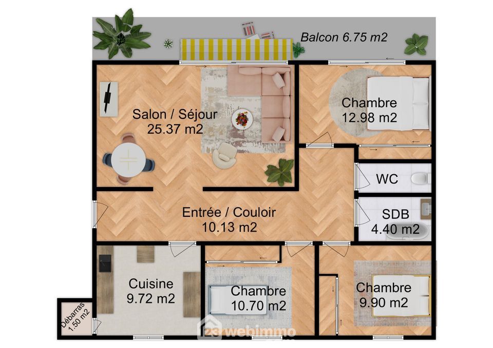 86000 Poitiers, entre le Pont Neuf et le Pont St-Cyprien. Proximité des commerces, écoles, collège. Au 4ème et dernier étage d'une résidence sécurisée avec ascenseur. Entrée, séjour de 25 m2, cuisine aménagée, 3 chambres de 10 à 13 m2 avec placard, salle de bain, WC séparé. Balcon de 7 m2, cellier, cave et garage privatifs. Chauffage collectif au gaz de ville. Aucun travaux à prévoir. Couverture de l'immeuble refaite à neuf en 2023 (isolation et étanchéité). Dans un cadre verdoyant, au bord du Clain et proche de tout. Dans une copropriété de 50 lots principaux. Charges courantes annuelles 2559 € : chauffage, eau froide, gardien, entretien ménager des communs et entretien du parc inclus.