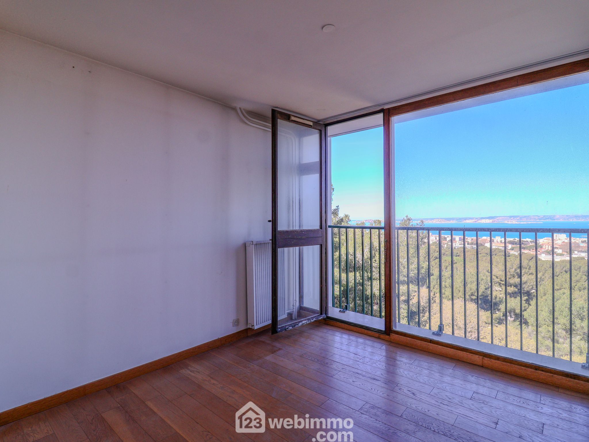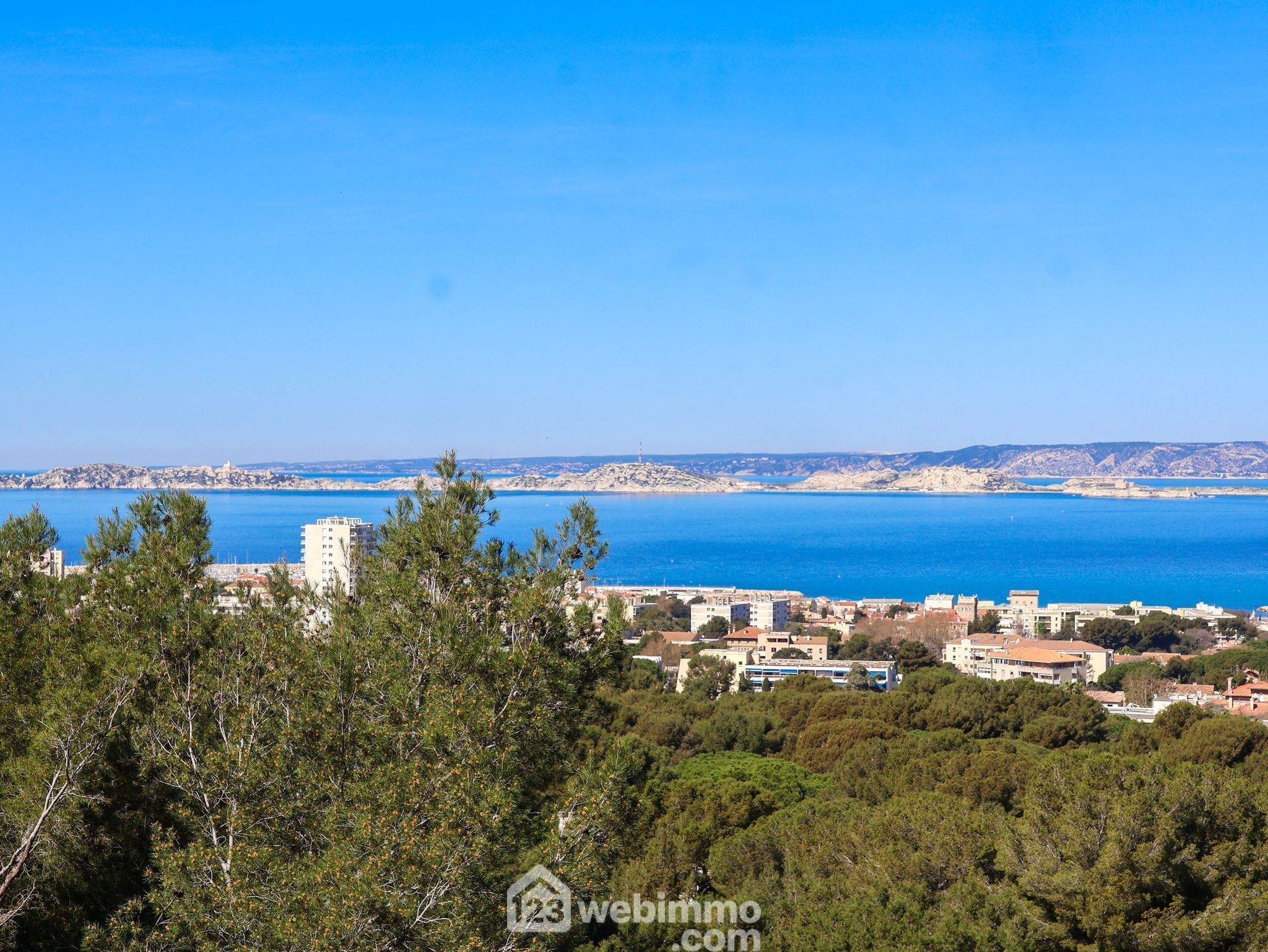 PARC DU ROY D'ESPAGNE. EXCLUSIVITE TOUR IV L'ARAGON au 7ème étage. Au pied du Parc national des Calanques, offrant de très belles vues dégagées mer et Calanques au calme absolu. Double exposition sud-ouest et nord-ouest. Appartement de type 3/4 traversant de 88m2 avec ascenseur aux très belles vues dégagées sur les îles du Frioul et le Parc national des Calanques. Un hall d'entrée introduit un lumineux séjour double de 31m2 et une grande cuisine équipée avec cellier attenant. La partie nuit se compose de 2 vastes chambres (14m2, 11m2) équipées de rangements offrant chacune de très belles vues mer, une salle de bain, une salle de douche et un toilette séparé complètent l'ensemble. Charges 260€/mois eau chaude chauffage inclus. . Taxe foncière 1650€. Bus 44 et 45 proches. Plages à 2km. Ecole Granados et lycée Marseilleveyre. Photos et plan sur 123webimmo Marseille9.