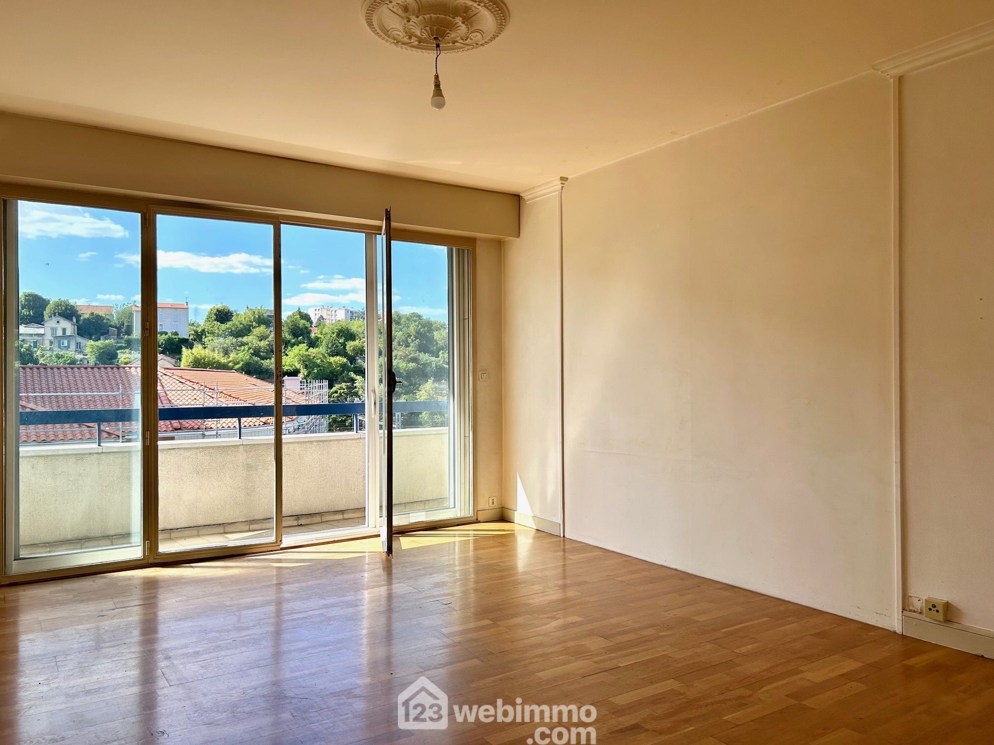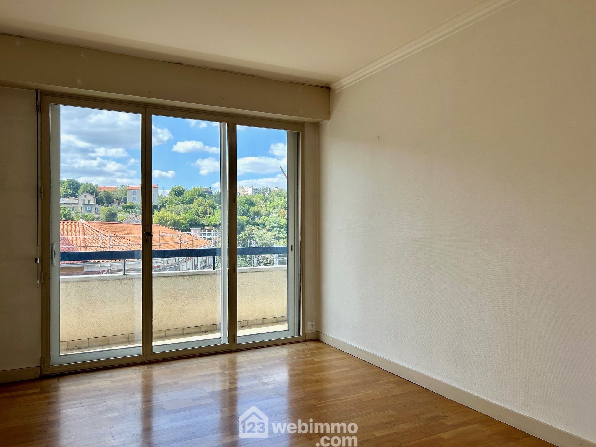 Exposé Est Ouest, l'appartement bénéficie d'un éclairage naturel maximal, avec vue sur la vallée de la Boivre et le quartier de la gare d'un côté et vue sur cour de l'autre.