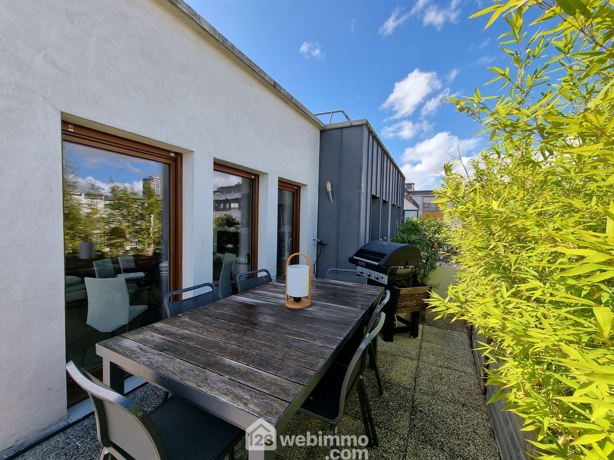 Dans une résidence récente de 2006, idéalement située en bord de Seine, agréable appartement de 4 pièces situé au dernier étage avec terrasse panoramique de 71 m² faisant le tour complet du logement.
