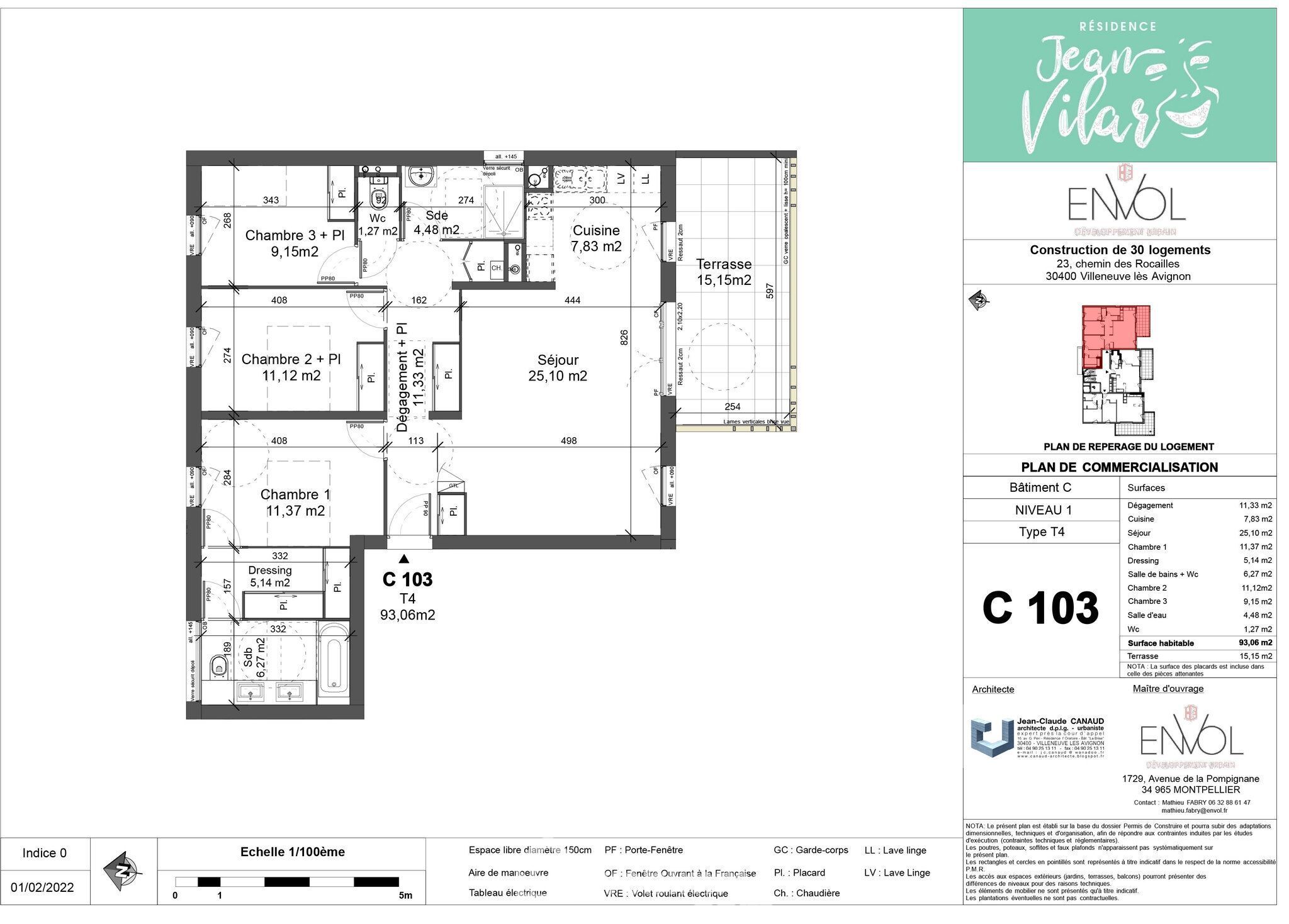 Découvrez ce magnifique appartement T4 neuf de 93 m², situé dans la Résidence Jean Vilar, une copropriété intimiste et moderne à Villeneuve-lès-Avignon.