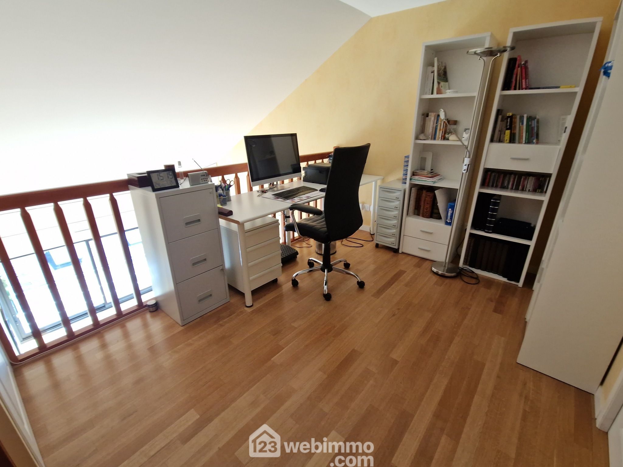 Vous pourrez vivre "de plain-pied", au rez-de-chaussée de l'appartement puisque ce niveau offre une chambre de 11 m², une salle de bain et un wc indépendant. L'étage offre lui un beau palier pouvant servir de bureau, 2 chambres supplémentaires, et une pièce d'eau avec wc, le tout légèrement mansardé.