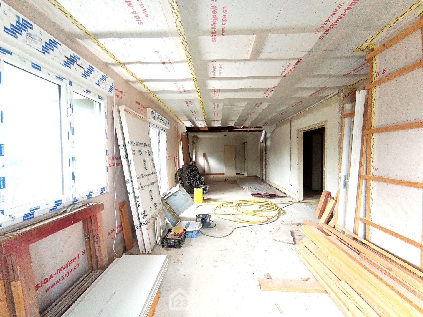 A l'étage accessible par l'extérieur nous trouvons un plateau d'environ 130 m2 partiellement rénové et dédié à l'habitation qui comprend déjà un appartement avec terrasse sur toiture en rénovation passive à finir d'aménager. Un toit terrasse entoure les futurs appartements.
