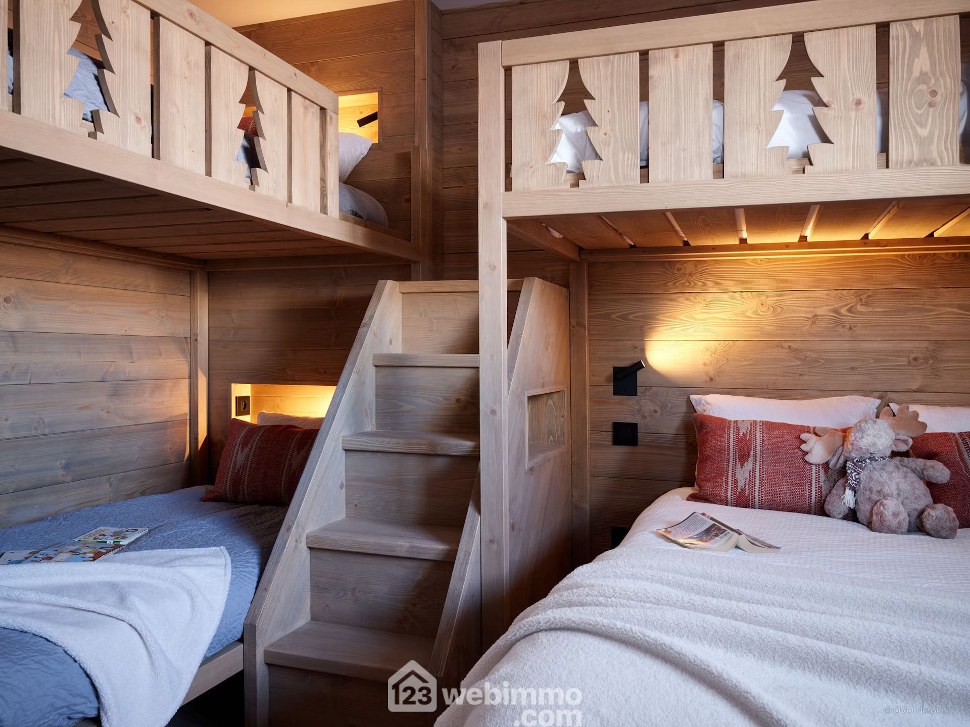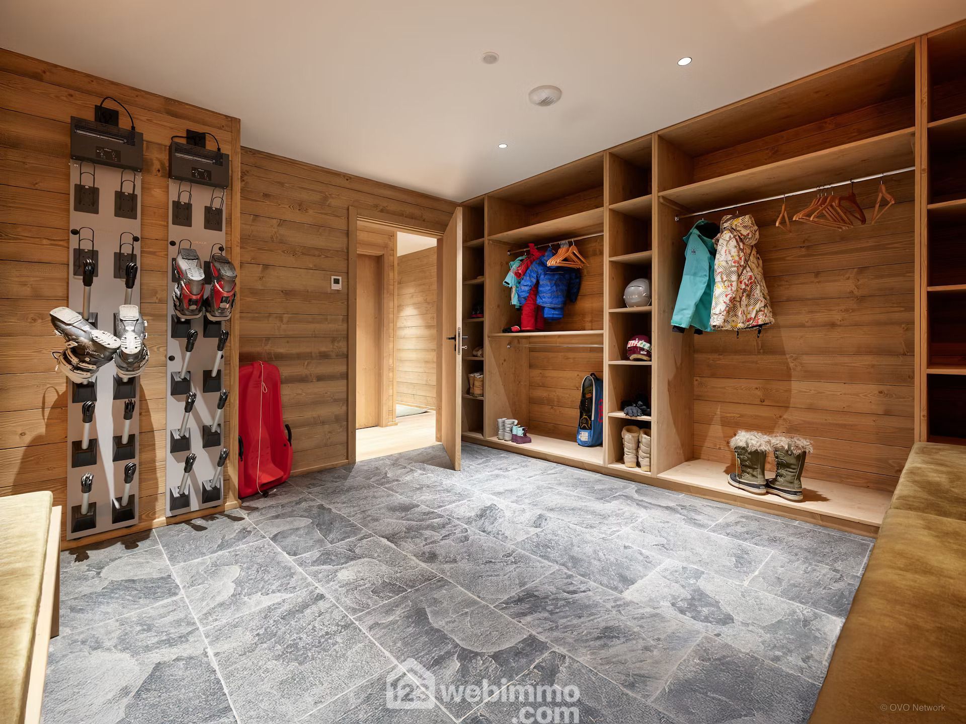 Avec 310 m², le chalet propose de beaux volumes, pensés pour partager des moments privilégiés entre proches, en toute élégance, dans un confort total. Il dispose de six chambres, six salles d’eau, d’un espace loisirs, d’une cuisine ouverte sur le séjour, d’un ski-room équipé de sèche-chaussures et de deux garages doubles.