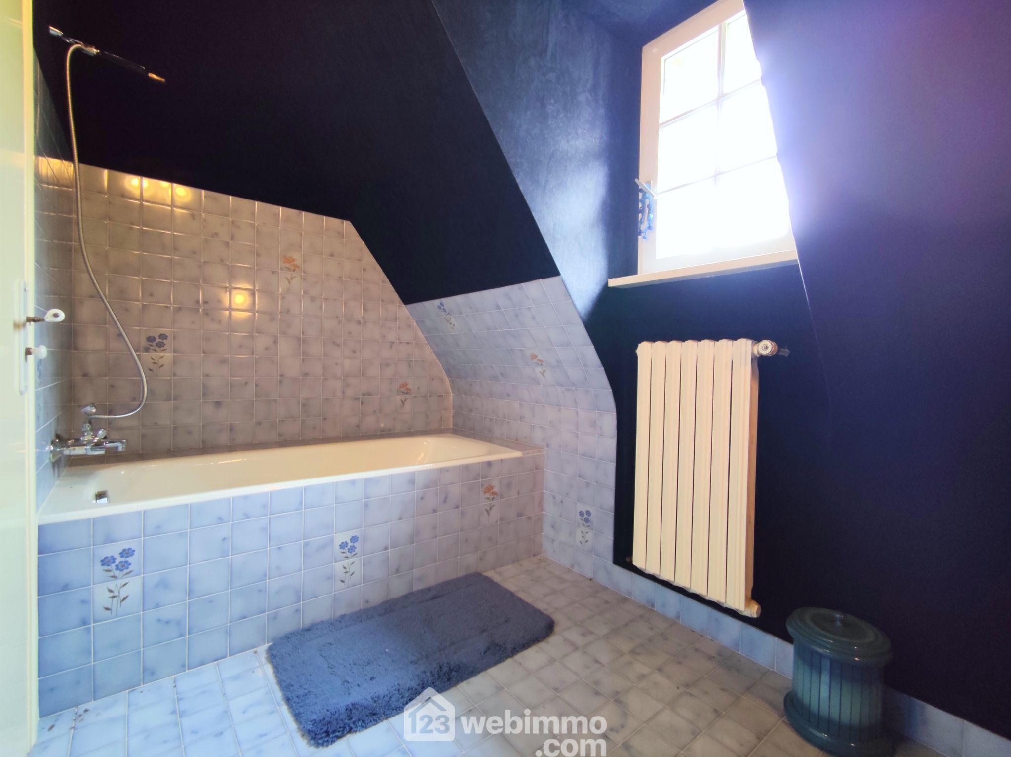 A l'étage, un palier dessert 4 belles chambres avec vue mer de 10m2 à 26m2, un bureau mansardé de 6m2, une salle de bains de 4m2 et un WC séparé avec lave-mains.