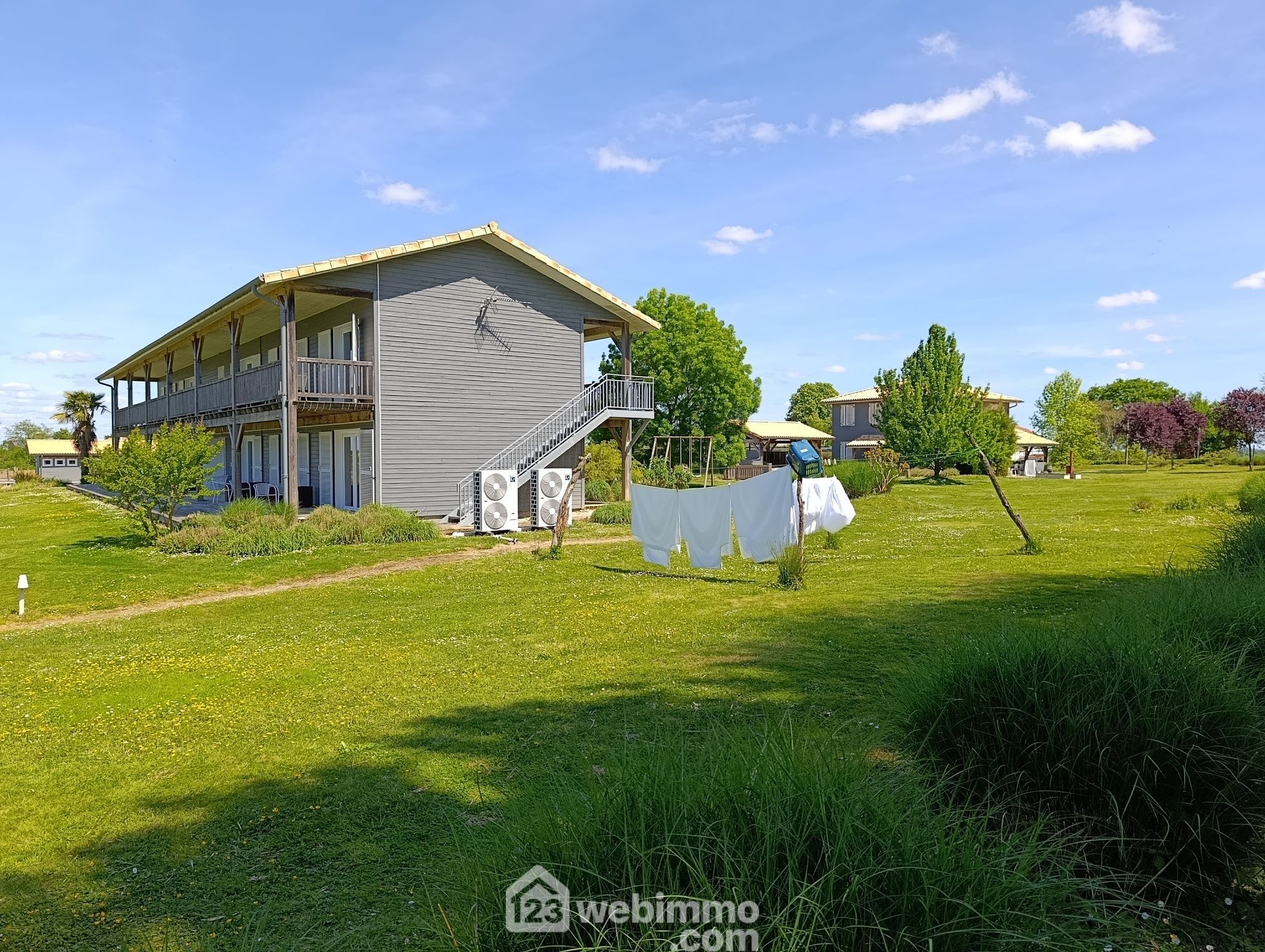 Entièrement construit en bois massif, avec une architecture raffinée pensant autant au confort qu’à l’intégration paysagère, le lieu respire la sérénité et l’élégance. Située à quelques minutes d'Hagetmau, cette propriété de 1,42 hectare marie subtilement charme naturel et prestations haut de gamme.