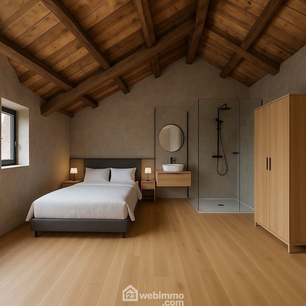 Erigée sur deux niveaux, elle permettra de créer un logement complet qui pourra s'élargir éventuellement grâce à la petite annexe mitoyenne qui sera alors transformée en cour ou en une surface habitable supplémentaire .