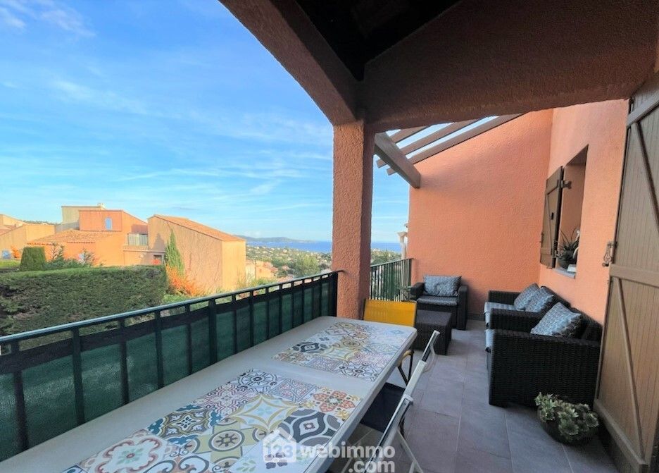 Cavalaire, Résidence avec piscine, dans un bel environnement, Charmant duplex 3pièces, vue mer parfait état, parking privé.
