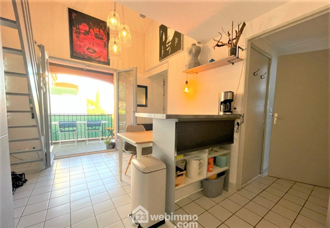 Cavalaire, dans un bel environnement, Charmant duplex, entrée, séjour avec grande hauteur sous plafond donnant sur sa terrasse de 10m2 en exposition Sud-Est, cuisine entièrement aménagée et équipée, une chambre de plain-pied, salle de douche contemporaine, w-c séparé, à l'étage deuxième chambre avec deux vélux et fenêtre, espace chambre et bureau, dressing, l'appartement est en parfait état, plan et aménagement optimisé, un emplacement de parking privé, l'agence 123webimmo de Sainte-Maxime vous propose une visite virtuelle de ce bien sur demande.