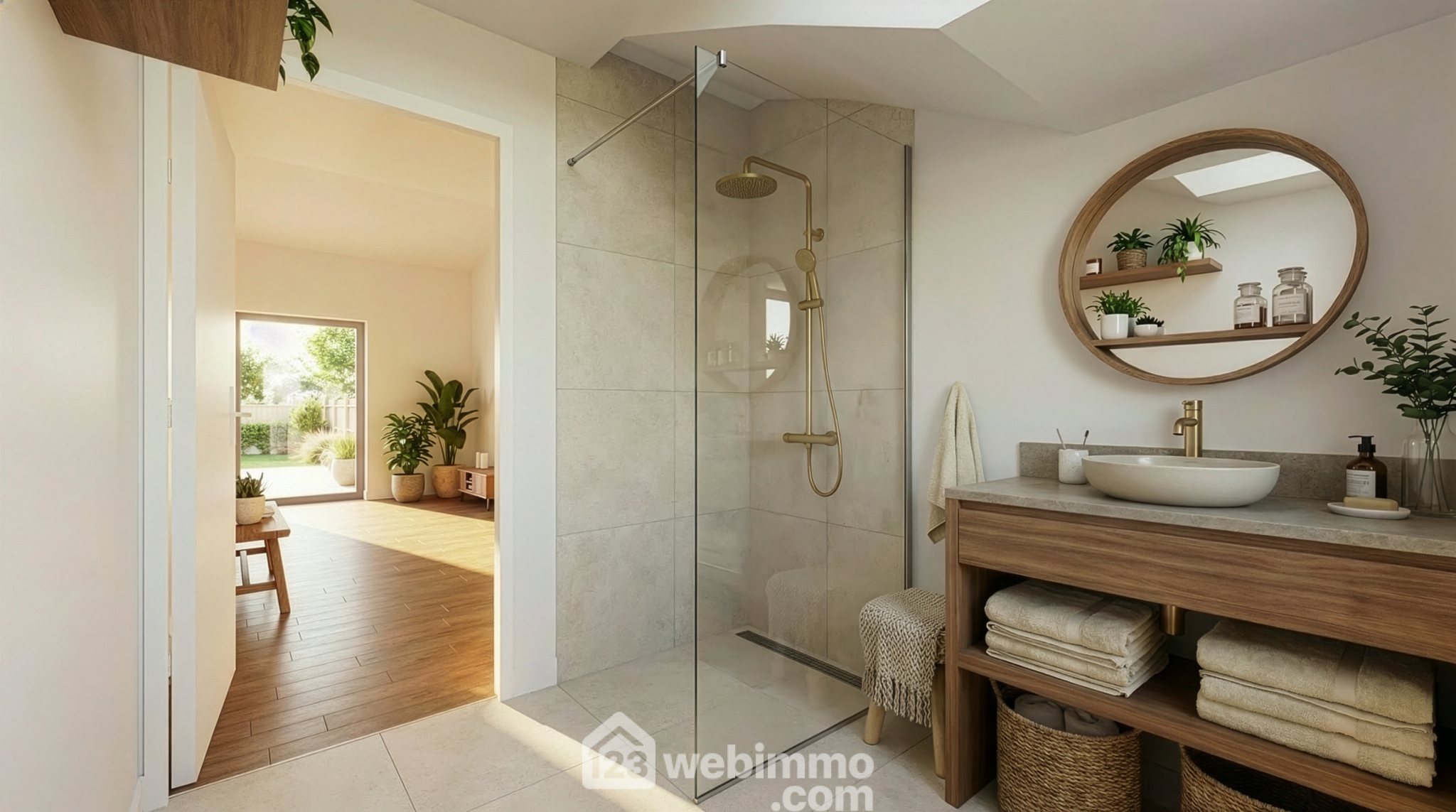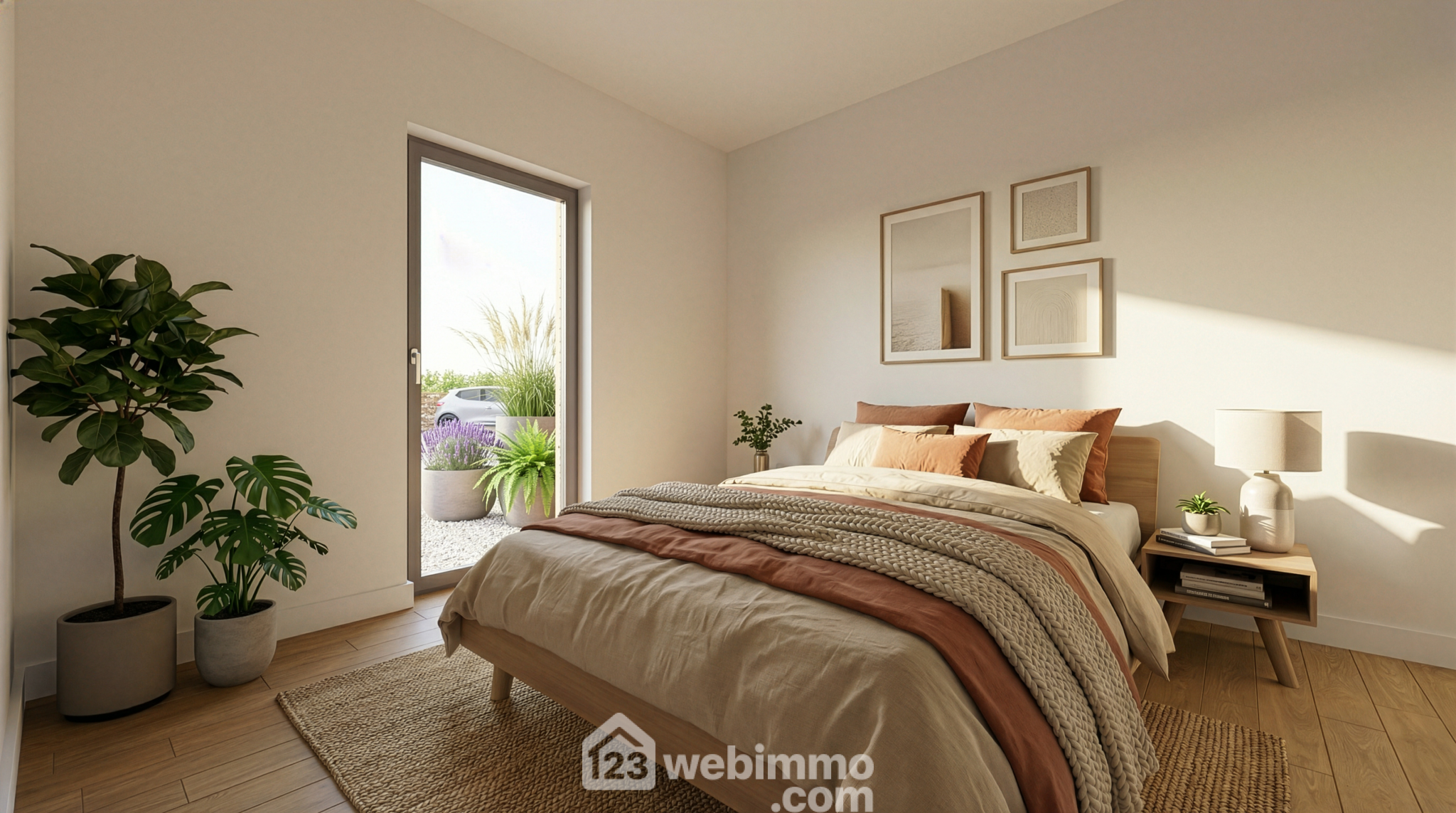 L'appartement se compose au rez-de-chaussée : d'un séjour avec cuisine ouverte aménagée équipée (hors réfrigérateur), un salon, une chambre, une salle d'eau, un wc indépendant et à l'étage : une chambre en mezzanine. En extérieur : une terrasse/cour privative d'environ 26 m² et sa place de stationnement.