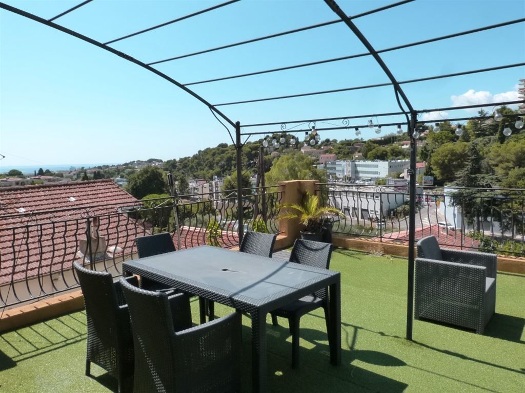 Dans le quartier des Moulières, ce duplex est situé dans une villa provençale à taille humaine (4 lots), sécurisée par un portail automatique, dans un secteur résidentiel de maisons individuelles. Il est très bien exposé, au calme et sans vis à vis. Il y a une immense terrasse de 38m² à la vue dominante avec vue mer transversale. Il jouit d'un jardin privatif de près de 150m² où une grande piscine hors sol trouvera naturellement sa place. Il y a 2 places de parking privatives commandées.