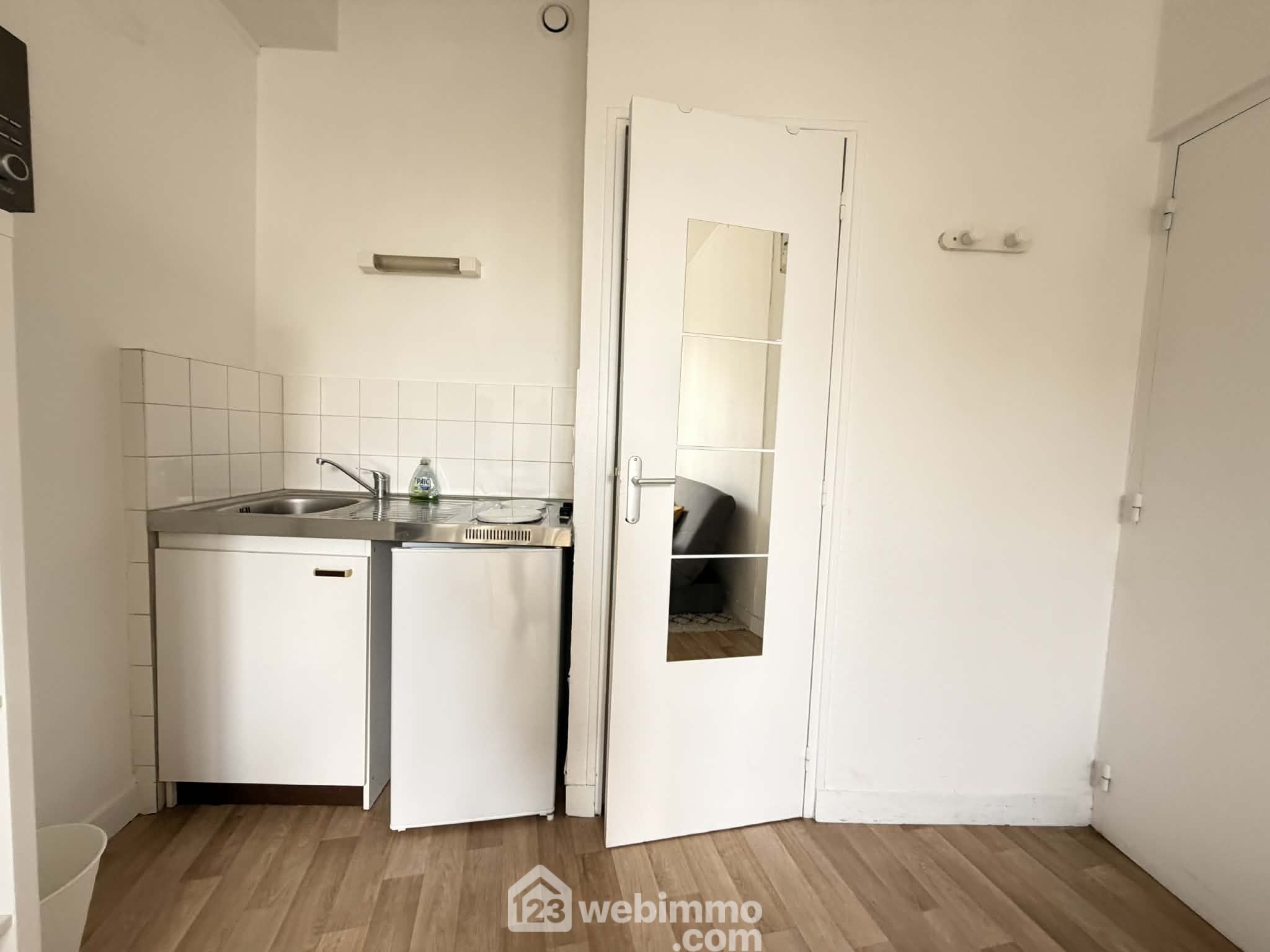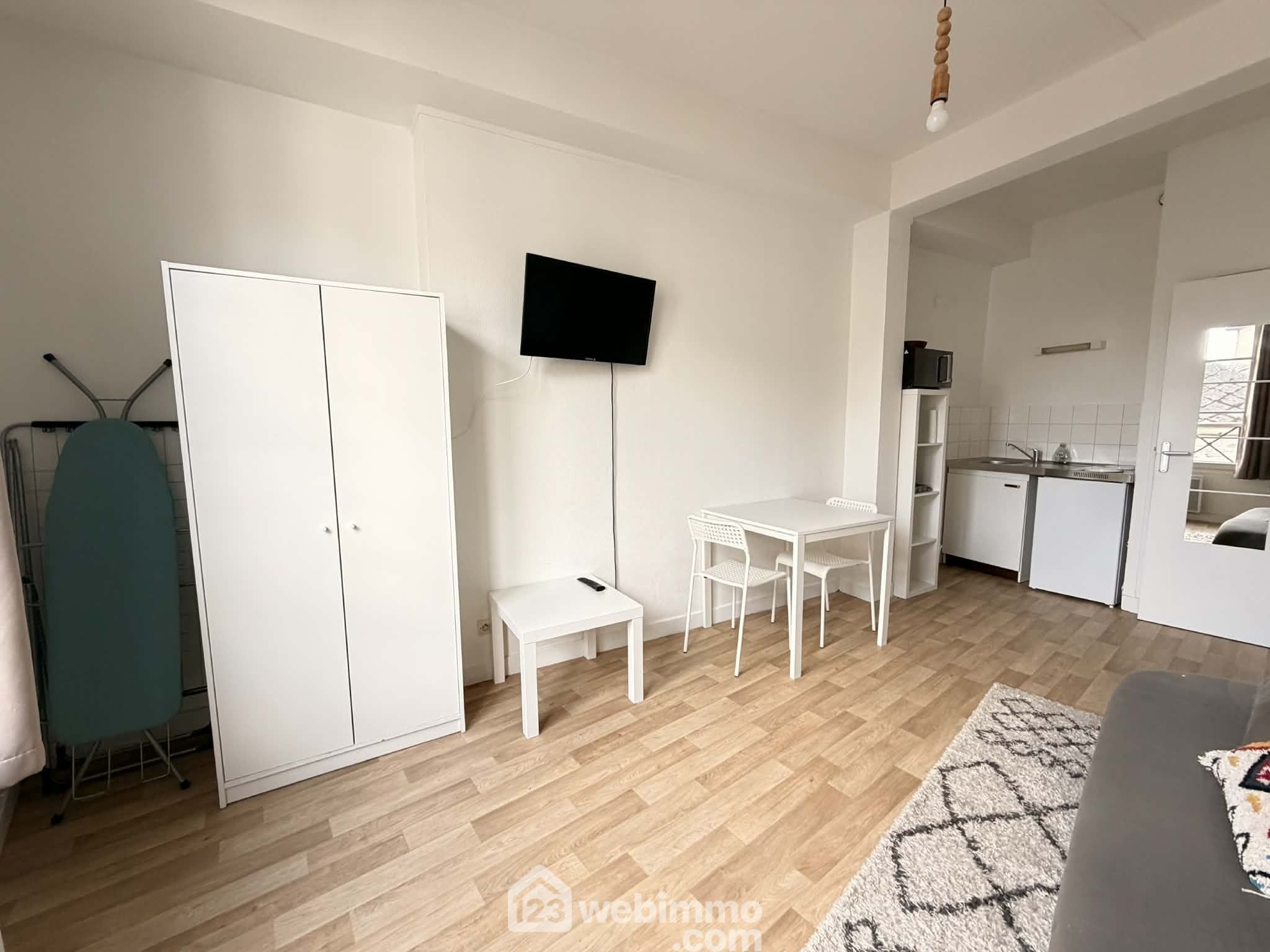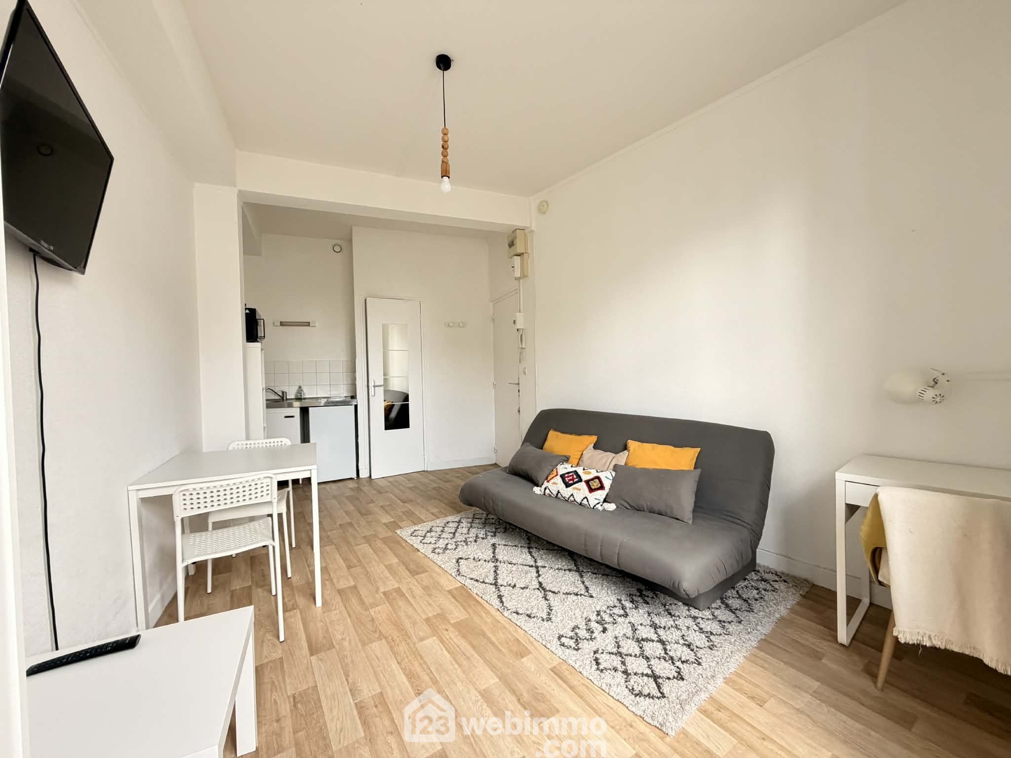 Un studio de 18 m² entièrement meublé avec pièce de vie ouverte sur cuisine et salle de bains, louable entre 350 € et 400 € / mois