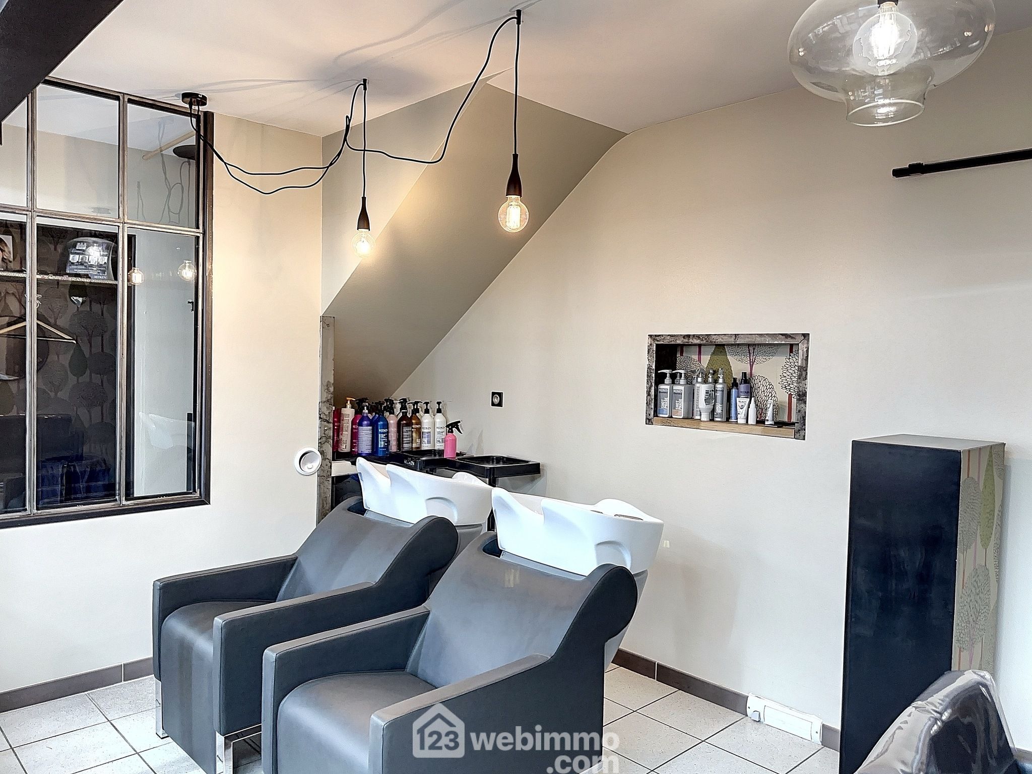 Le rez-de-chaussée est occupé par un salon de coiffure bien établi depuis 2016, le seul dans la commune, offrant une activité commerciale prospère sans concurrence directe. La surface au sol de cet espace commercial ( y compris réserve et courette attenante) est d'environ 77m² . Avec le parking à proximité, c'est une opportunité commerciale clé en main.