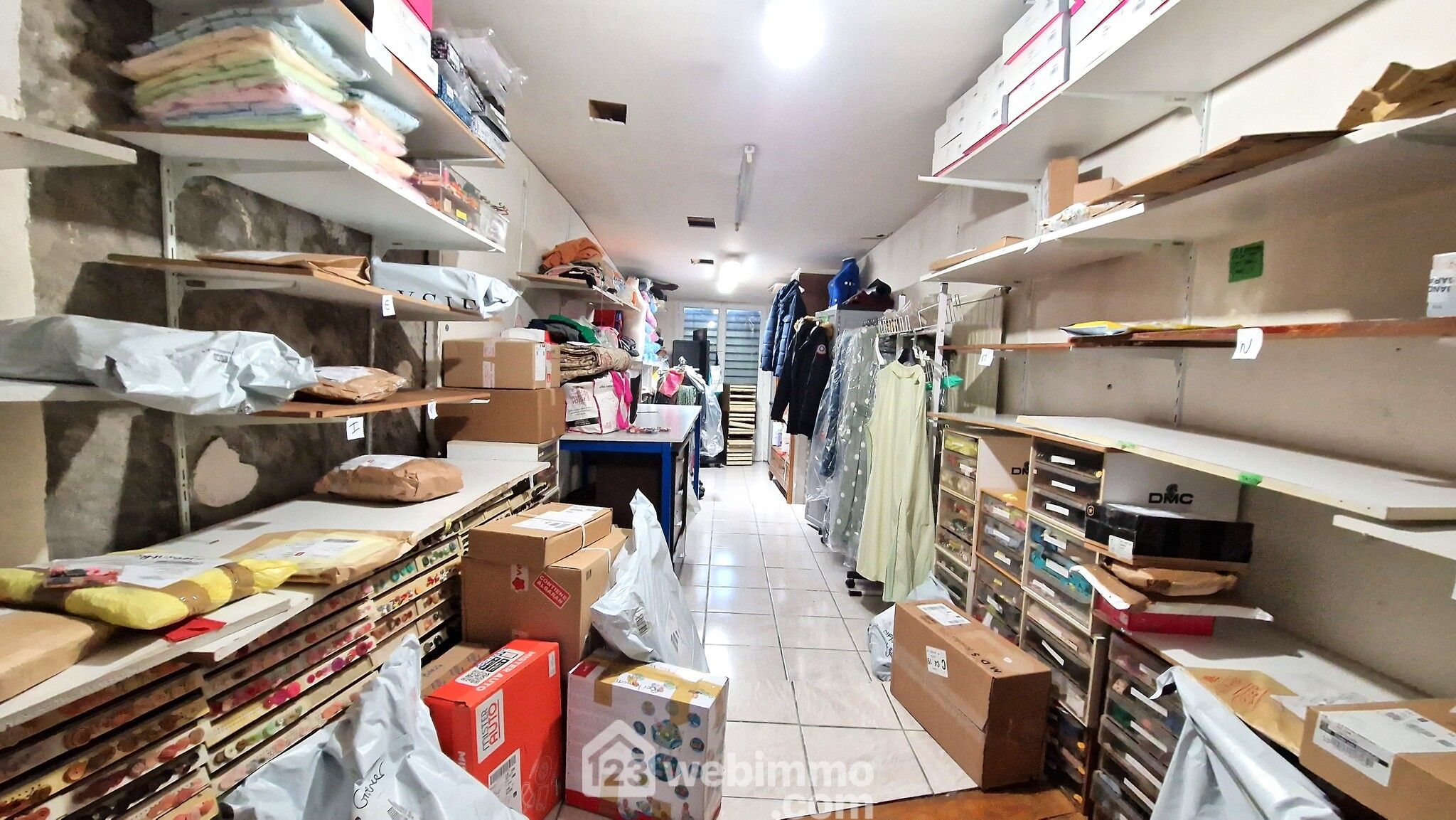Ensemble immobilier comprenant un local commercial avec fonds de commerce et un appartement loué 550 euros par mois comprenant une entrée, 2 chambres, 2 wc, une salle de douche et une cuisine indépendante avec espace repas donnant accès sur une terrasse.