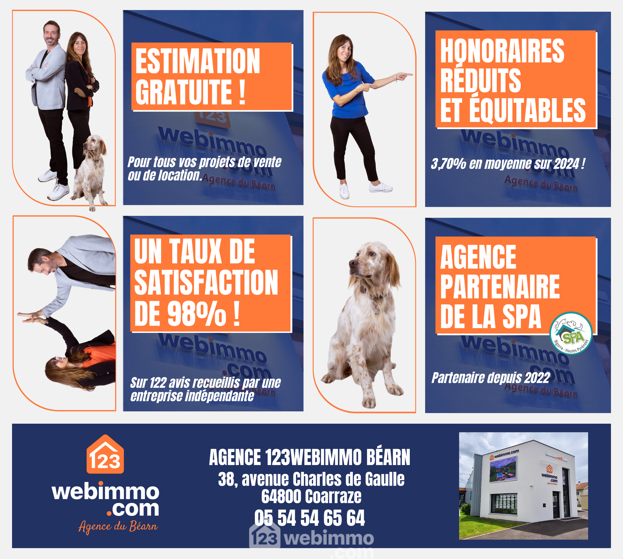 Agence 123webimmo Béarn, spécialiste de l’immobilier à Nay et dans le Béarn. Locale et familiale, notre agence obtient 98 % de satisfaction client. Nous vous offrons l’estimation gratuite de votre maison ou appartement pour tout projet de vente !
