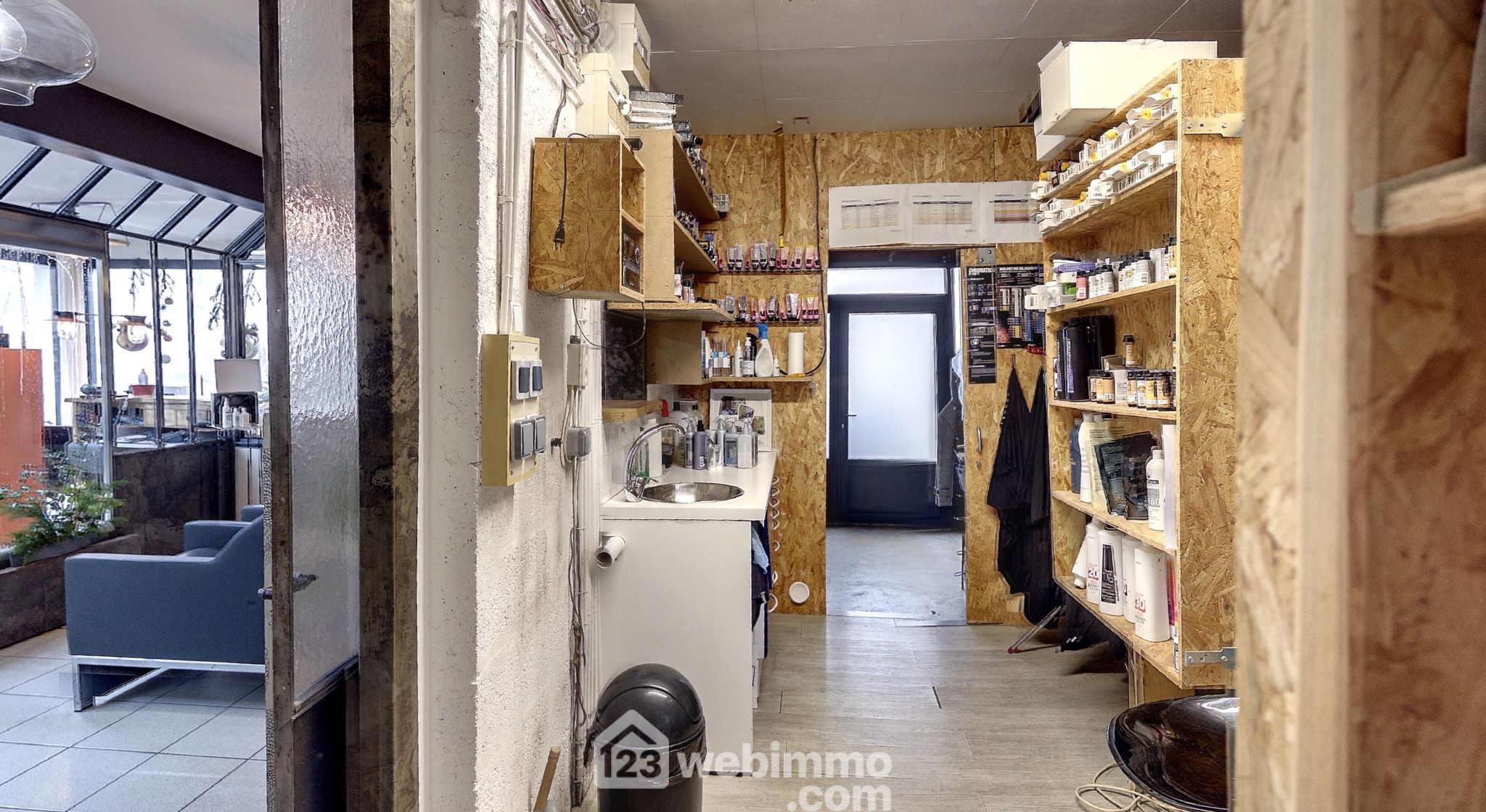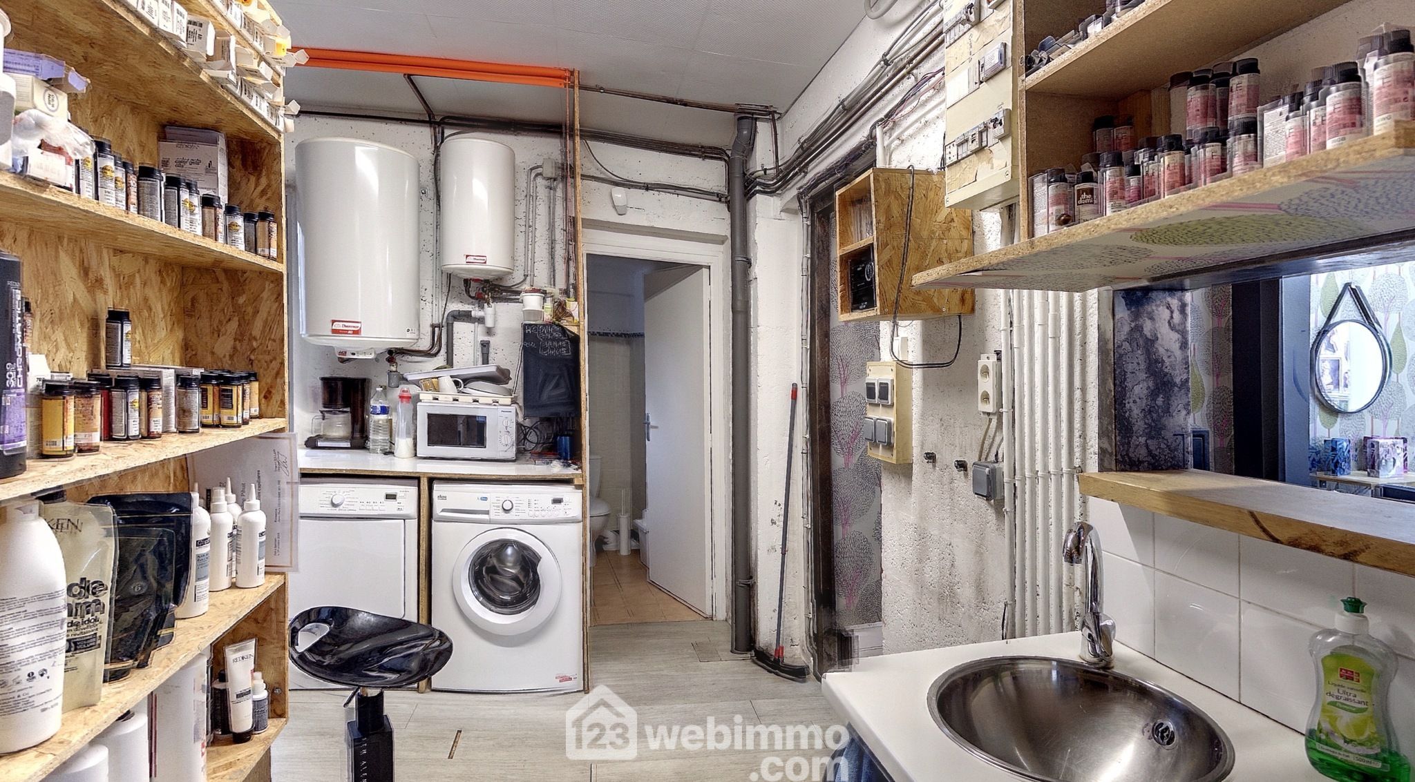 Les installations comprennent aussi une réserve avec buanderie, un WC avec lave-mains, et une cour fermée à l'arrière, ajoutant confort et fonctionnalité à votre espace de travail.