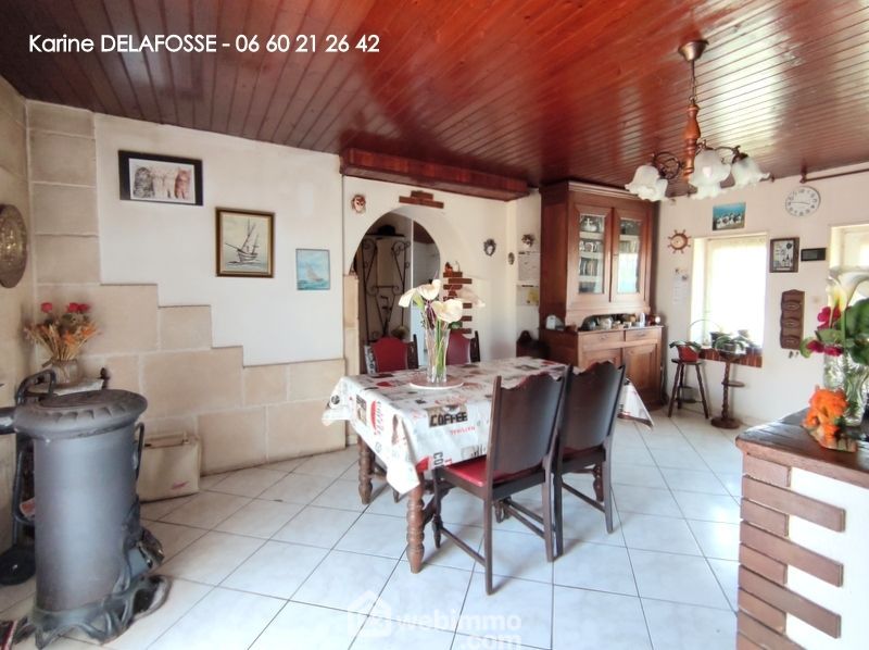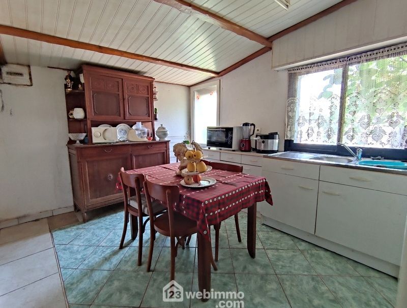 Elle se compose d'une grande cuisine avec poêle à bois, un séjour avec cheminée foyer ouvert, 2 chambres (dont une avec accès indépendant), une salle de bains, un cellier, un espace bureau, un grand garage avec portes automatiques, un poulailler. Le tout sur une parcelle de 1200 m² environ, arborée avec pelouse et parking, terrain 3/4 clos. L'assainissement est non collectif à remettre aux normes. Les ouvertures sont pour une partie en pvc double vitrage (côté rue). Travaux à prévoir. Nombreuses possibilités d'aménagement. Contactez-moi pour tout renseignement et organiser une visite. (visite à distance possible).