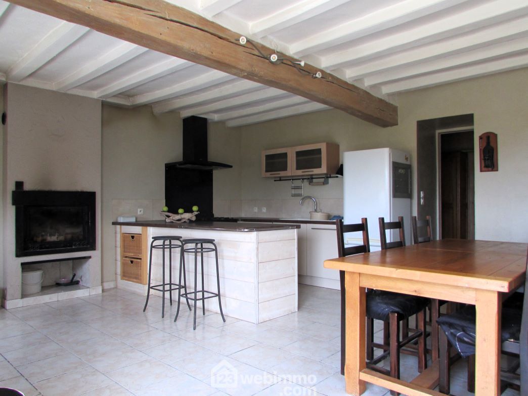 Longère avec vie de plain-pied, 133 m2 habitables, 7 pièces, 3 chambres, garage, atelier, terrasse, cour fermée, terrain 5459 m2 env.