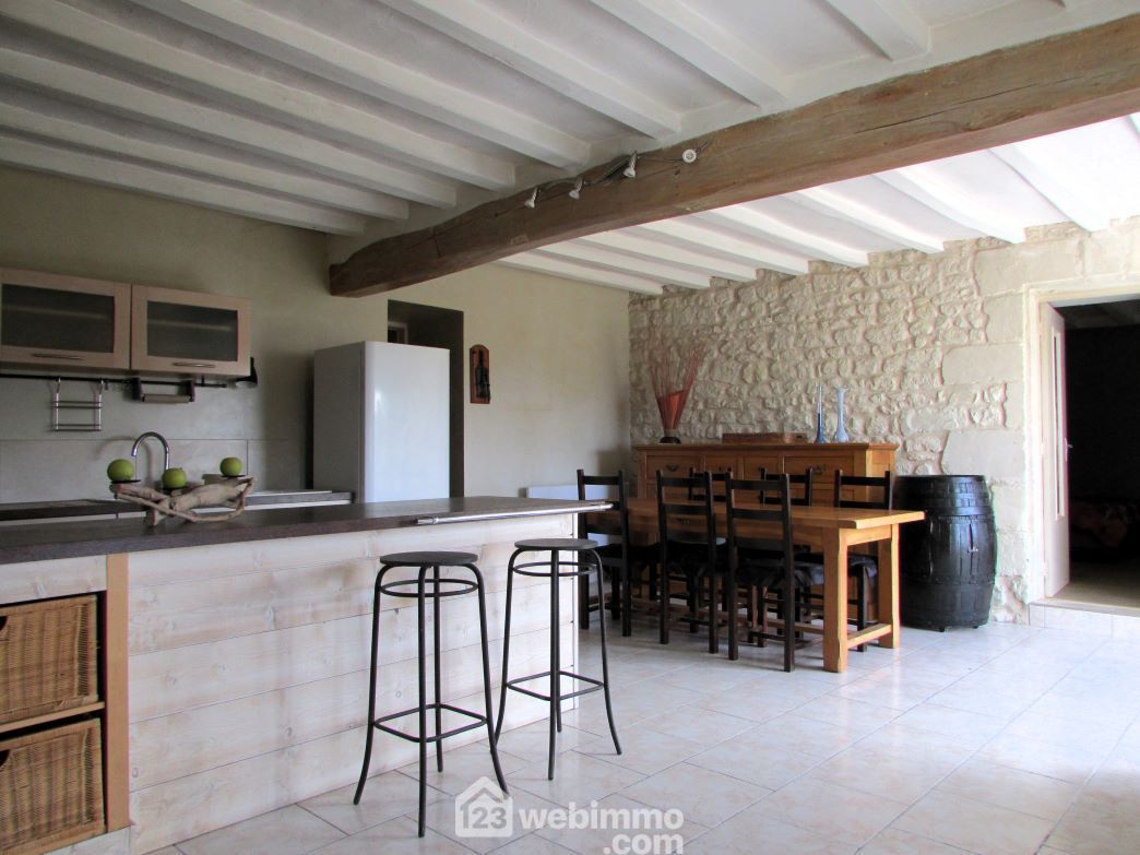 37120 Jaulnay, en pleine campagne avec vue dégagée, à 15 min de Richelieu, à 20 min de Châtellerault et de l'autoroute A10. Au rez-de-chaussée : cuisine/séjour, salon, chambre, dressing de 13 m2, salle de bain, WC séparé, buanderie et garage de 60 m2 attenant. A l'étage : 2 chambres, bureau et grenier aménageable. A l'extérieur : atelier, cellier, débarras, puits, terrasse en travertin de 35 m2. Une maison rénovée en 2007 et 2012 ( isolation, électricité, plomberie, couverture neuve de 2008 en ardoise, fosse toutes eaux, huisseries, enduit de façade, terrasse, etc...). Prête à habiter et un potentiel de superficie à réhabiliter pour un cadre de vie sans voisin à moins de 120 mètres de distance.