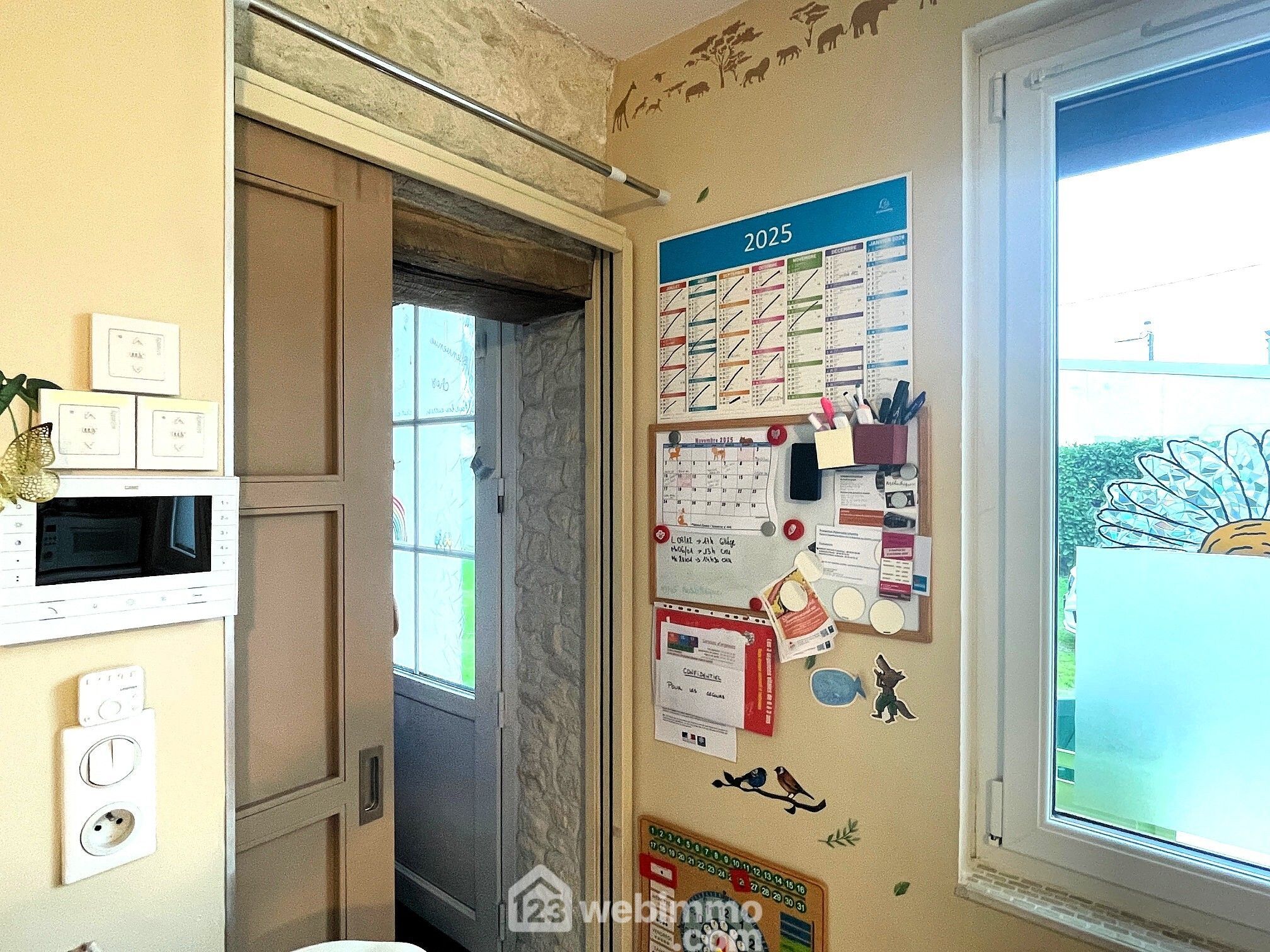 A l'extérieur : portail électrique avec visiophone, cour fermée avec garage, préau, jardin d'agrément et potager.