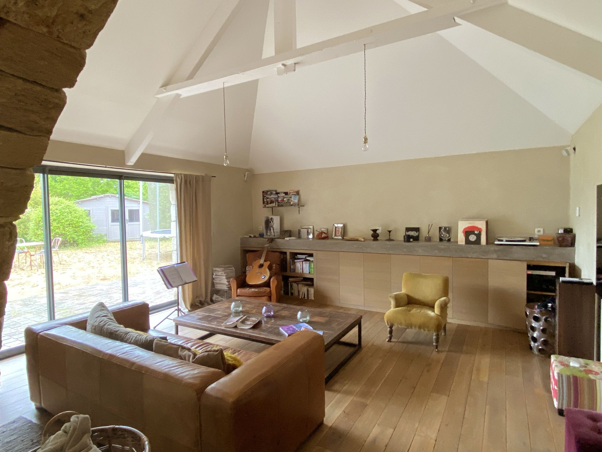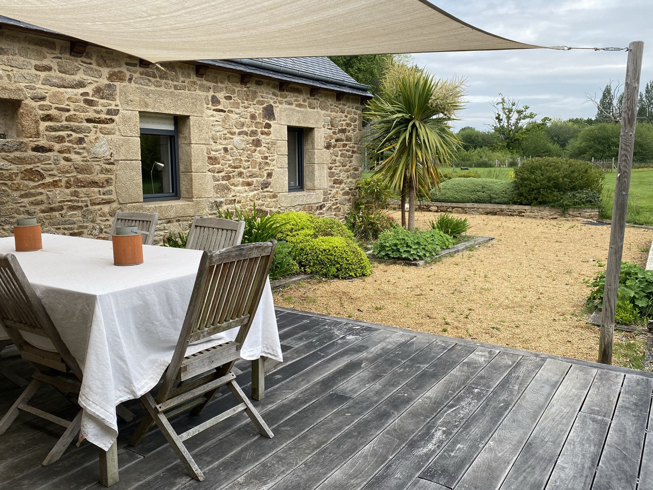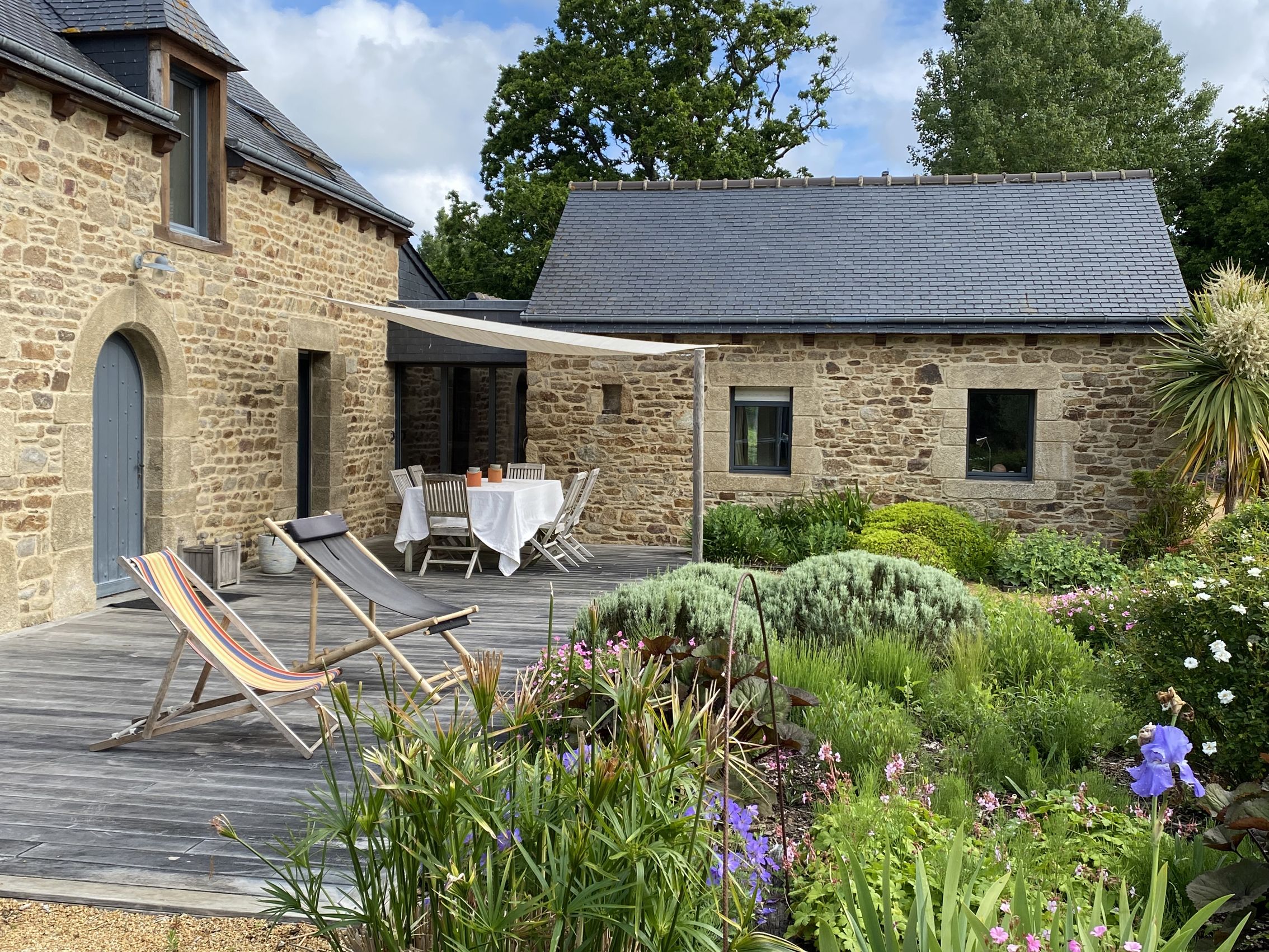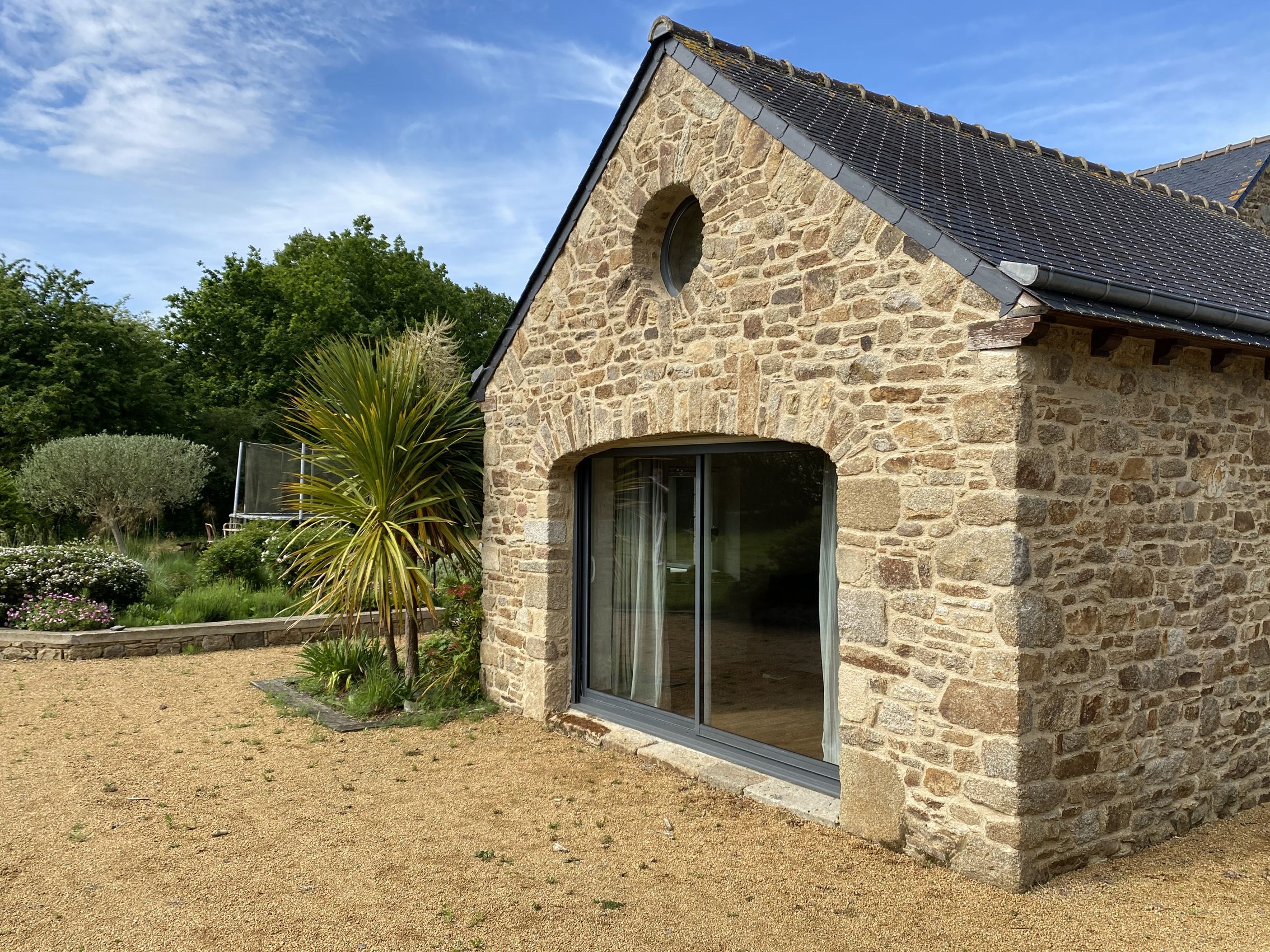 construction en pierre et couverte en ardoise jouxte un double auvent offrant de multiples rangements, un espace