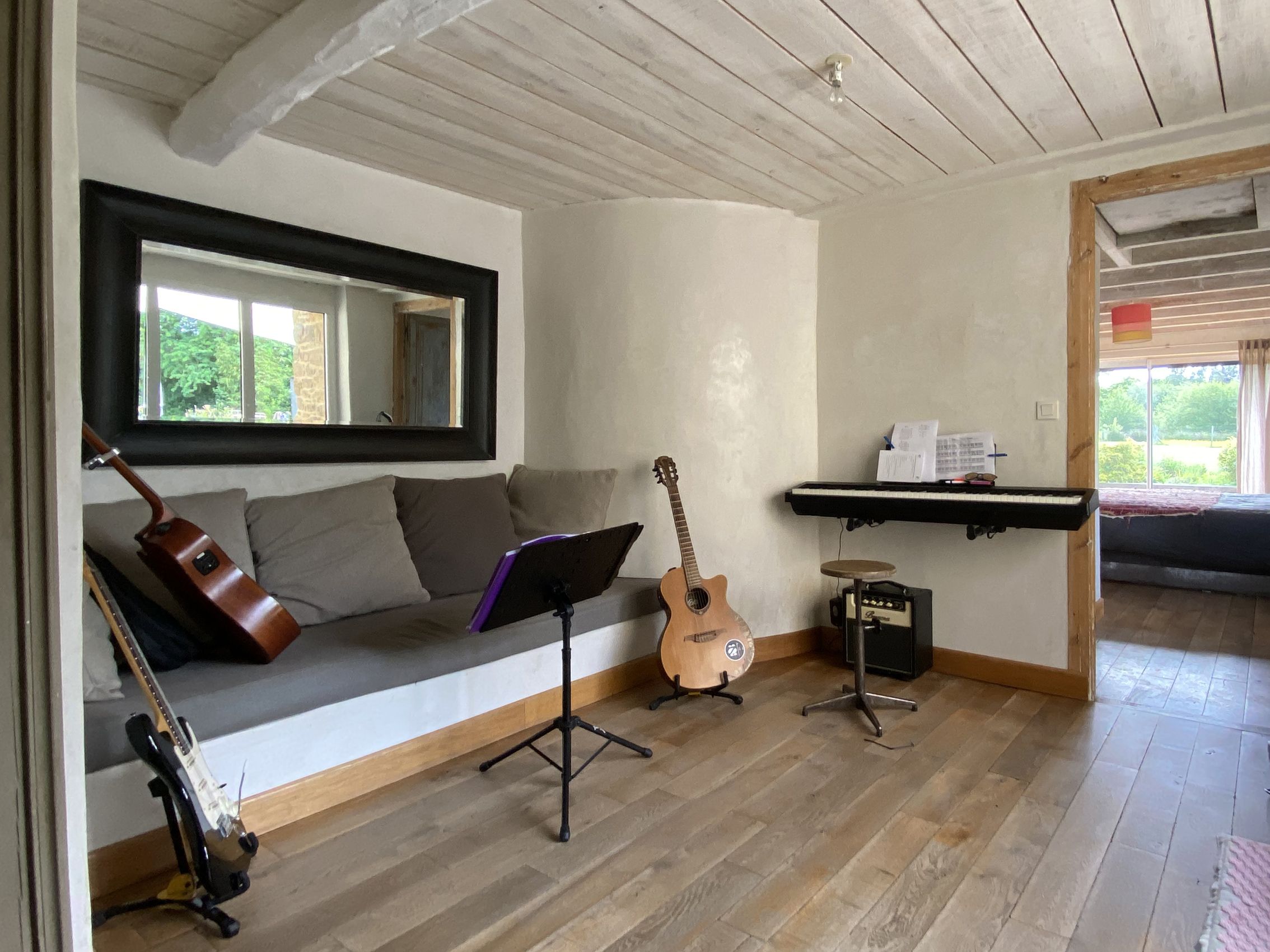 Magnifique longère rénovée avec soin, comprenant au rez-de-chaussée un séjour, un salon disposant d'un insert