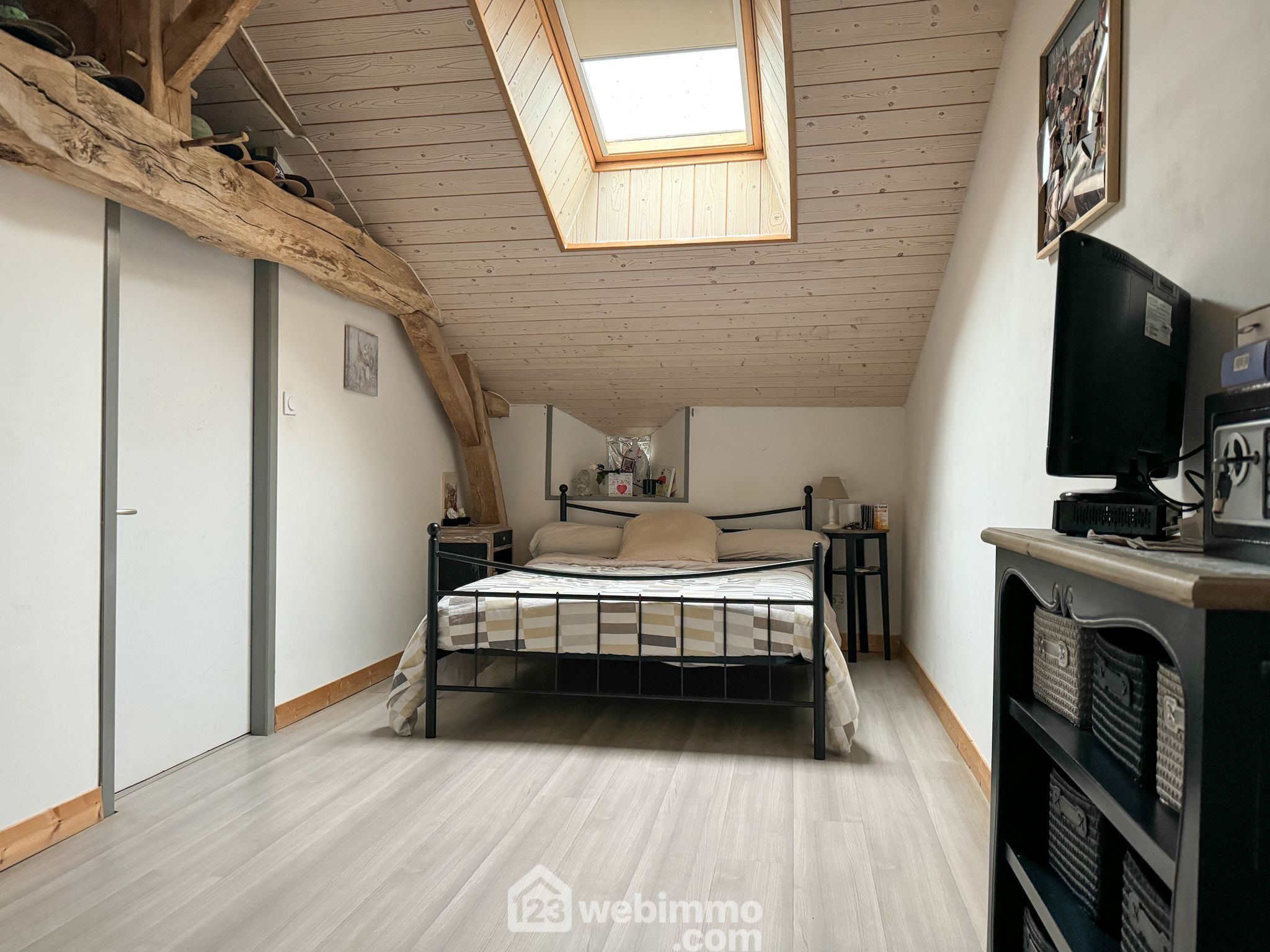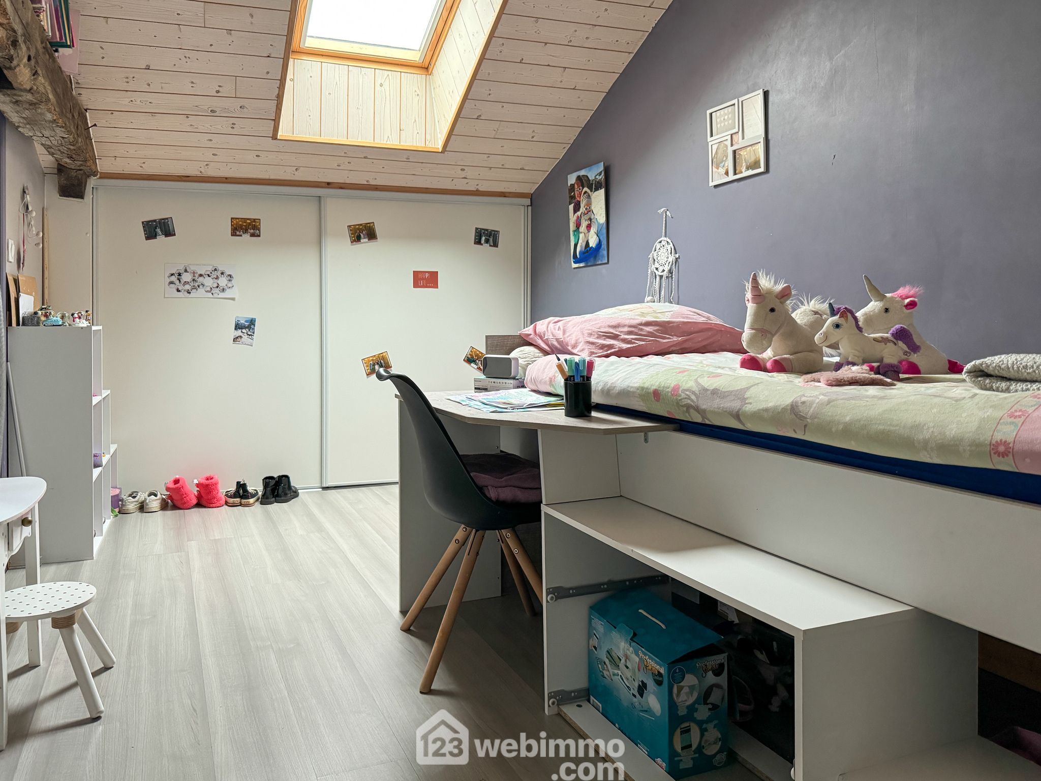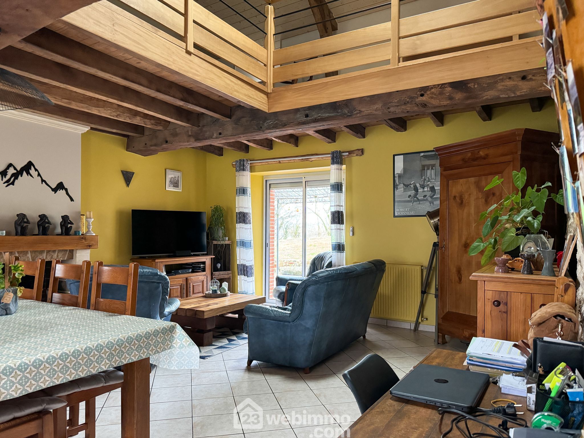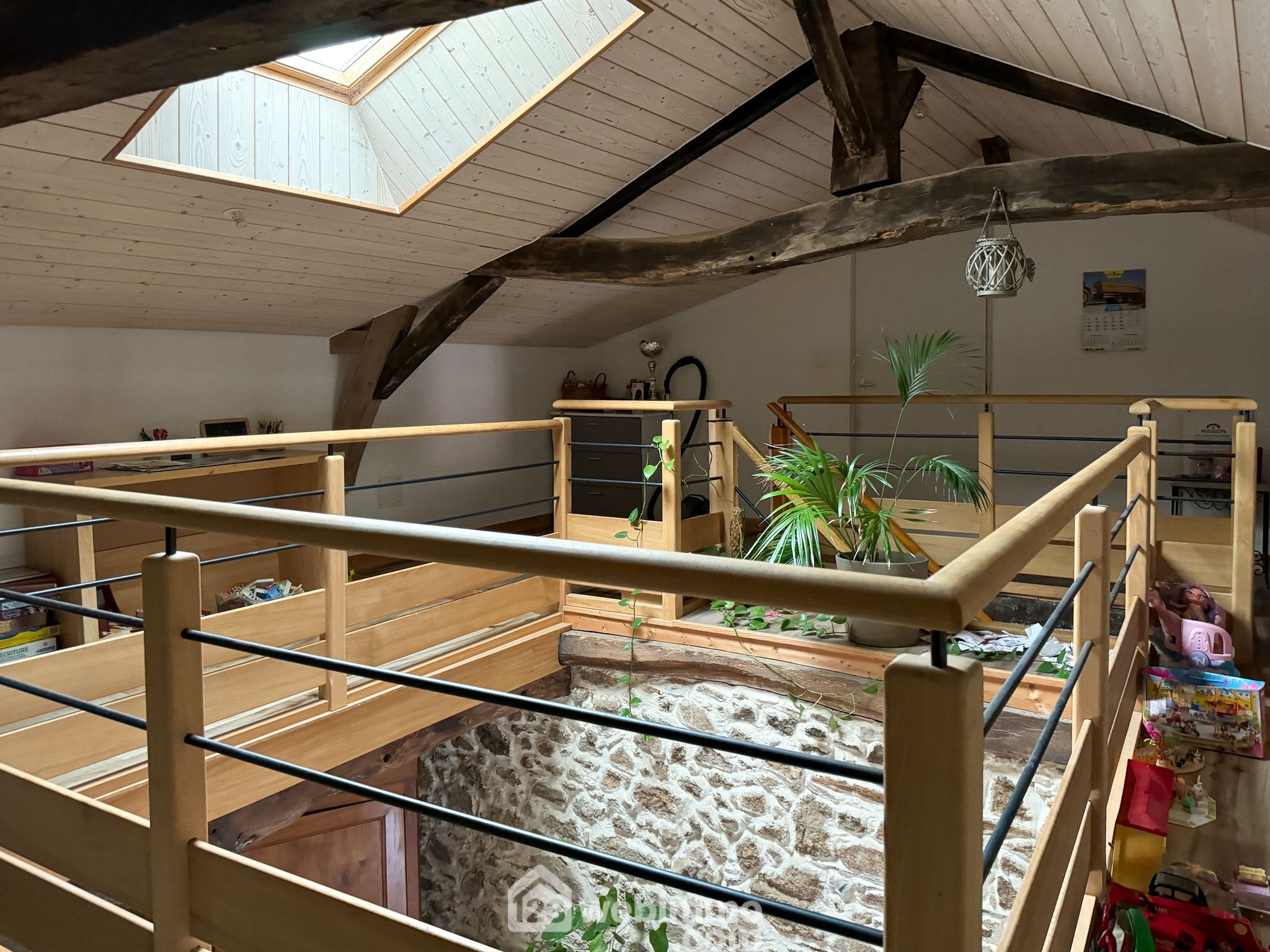 A l'étage, vous apprécierez la mezzanine qui surplombe le salon, les 2 chambres, une salle de bain avec wc.