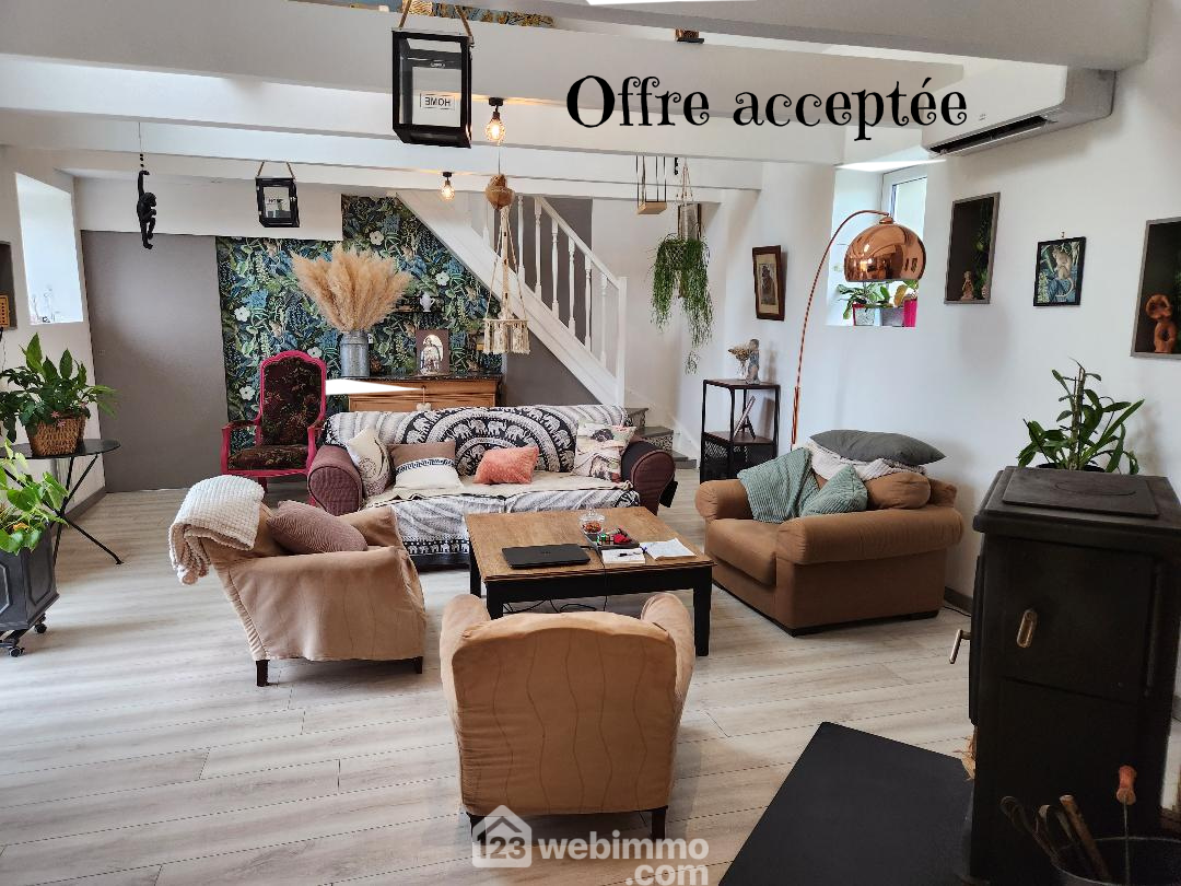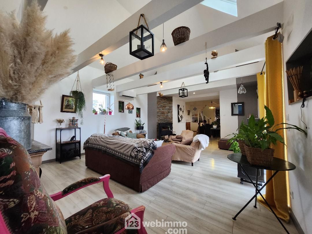 Dès l’entrée, vous serez séduit par la grande cuisine équipée et aménagée, qui se distingue par sa grandeur et son agencement idéal pour les amateurs de cuisine ainsi qu'une véranda donnant sur une terrasse exposé plein sud, une buanderie ainsi qu'une arrière cuisine, un vaste salon plafond cathédrale baigné de lumière donnant sur une terrase, ainsi qu'a l'étage un bureau, la pièce à vivre est chaleureuse et conviviale avec un poêle à bois qui sépare subtilement les deux espaces du séjour, vous trouverez une chambre parentale avec salle d'eau à finir offrant tout le confort nécessaire, d'une salle d'eau et WC.