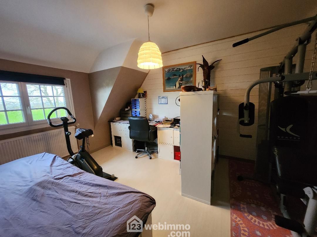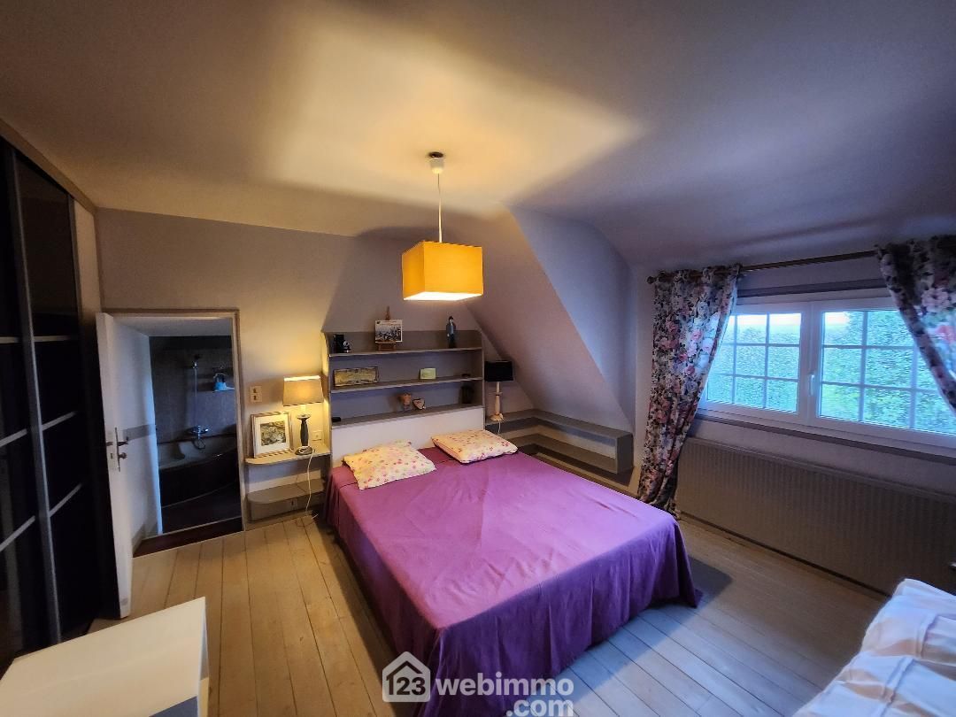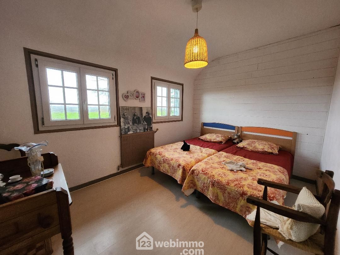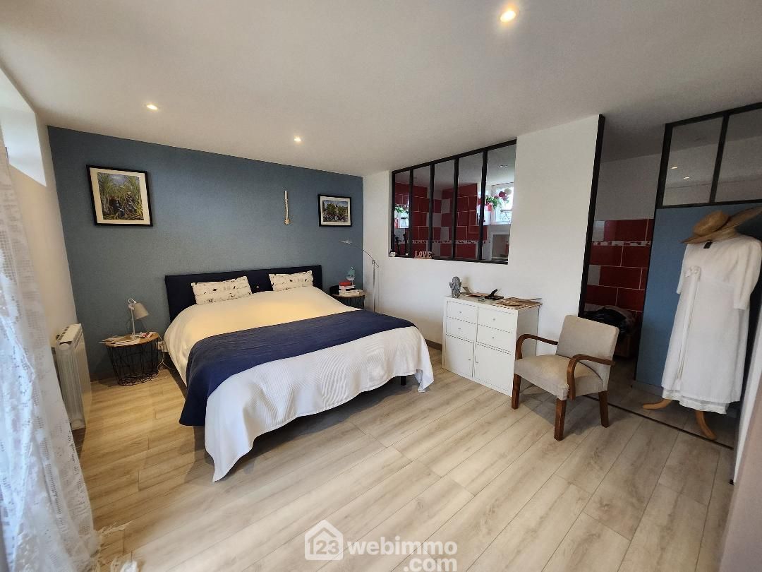 À l’étage, cette longère propose une belle chambre parentale avec salle de bains spacieuse et lumineuse ainsi qu'un dressing, avec deux autres chambres et d'un WC. Avec sa rénovation récente, son ambiance chaleureuse et son emplacement idéal au coeur de la nature, cette longère est un véritable havre de paix.