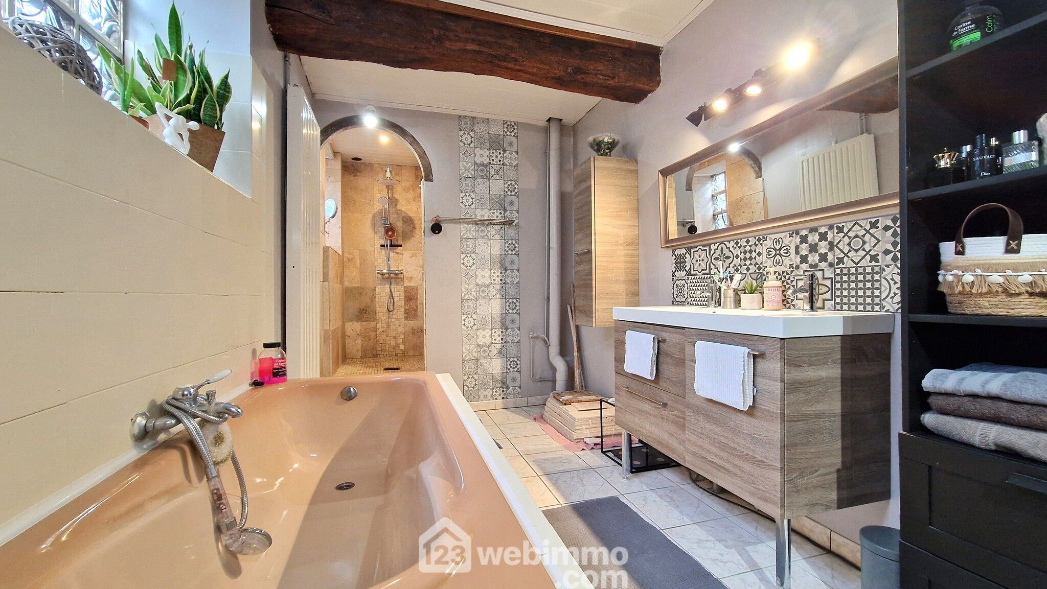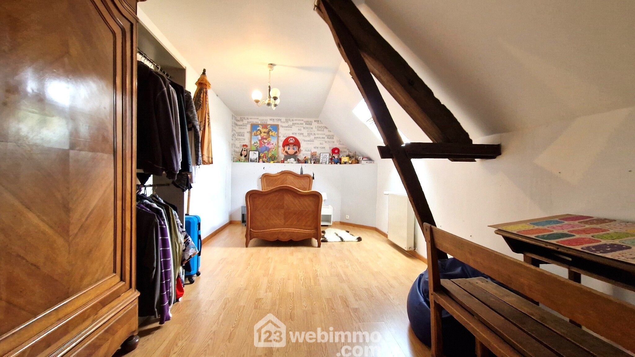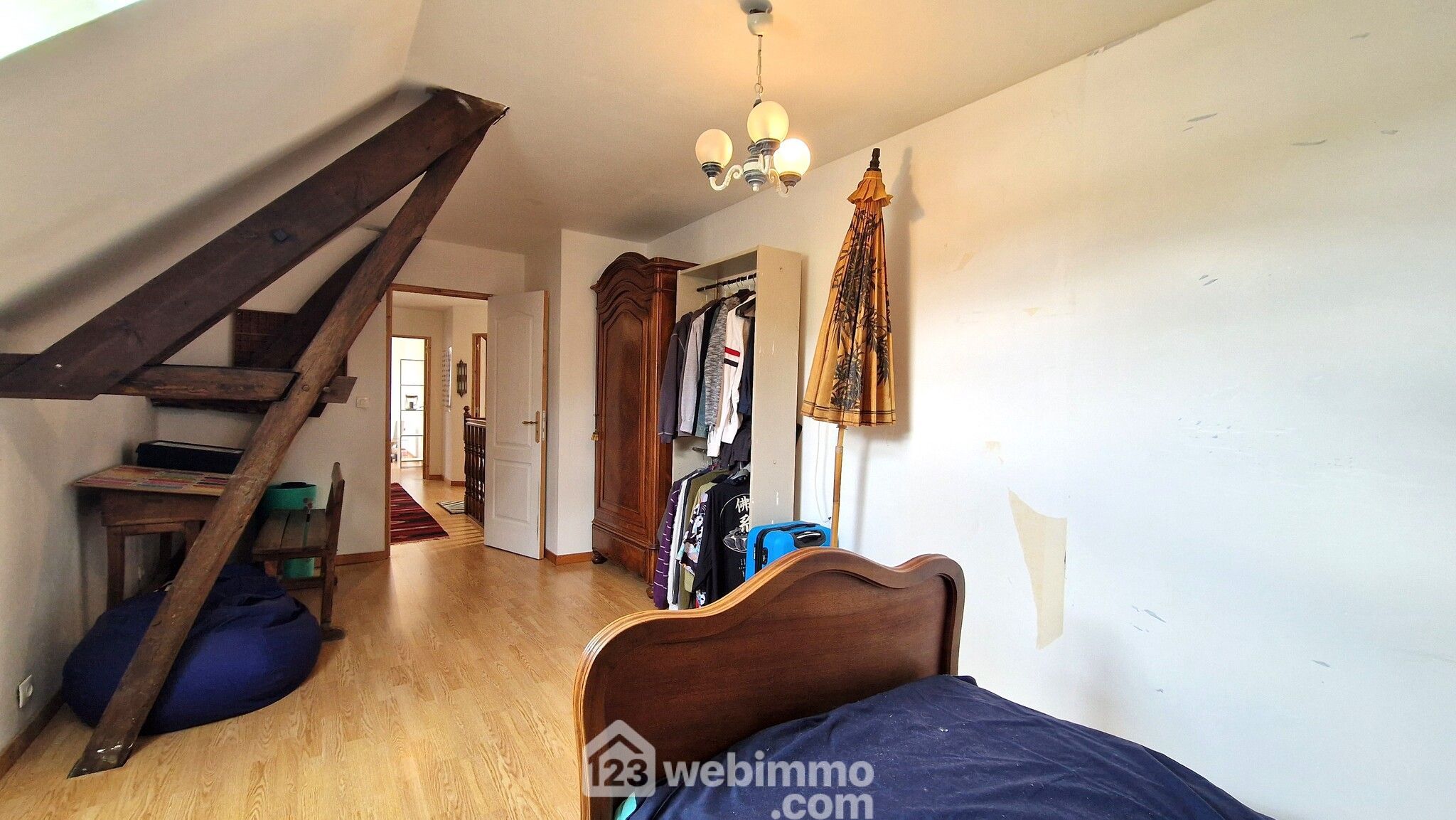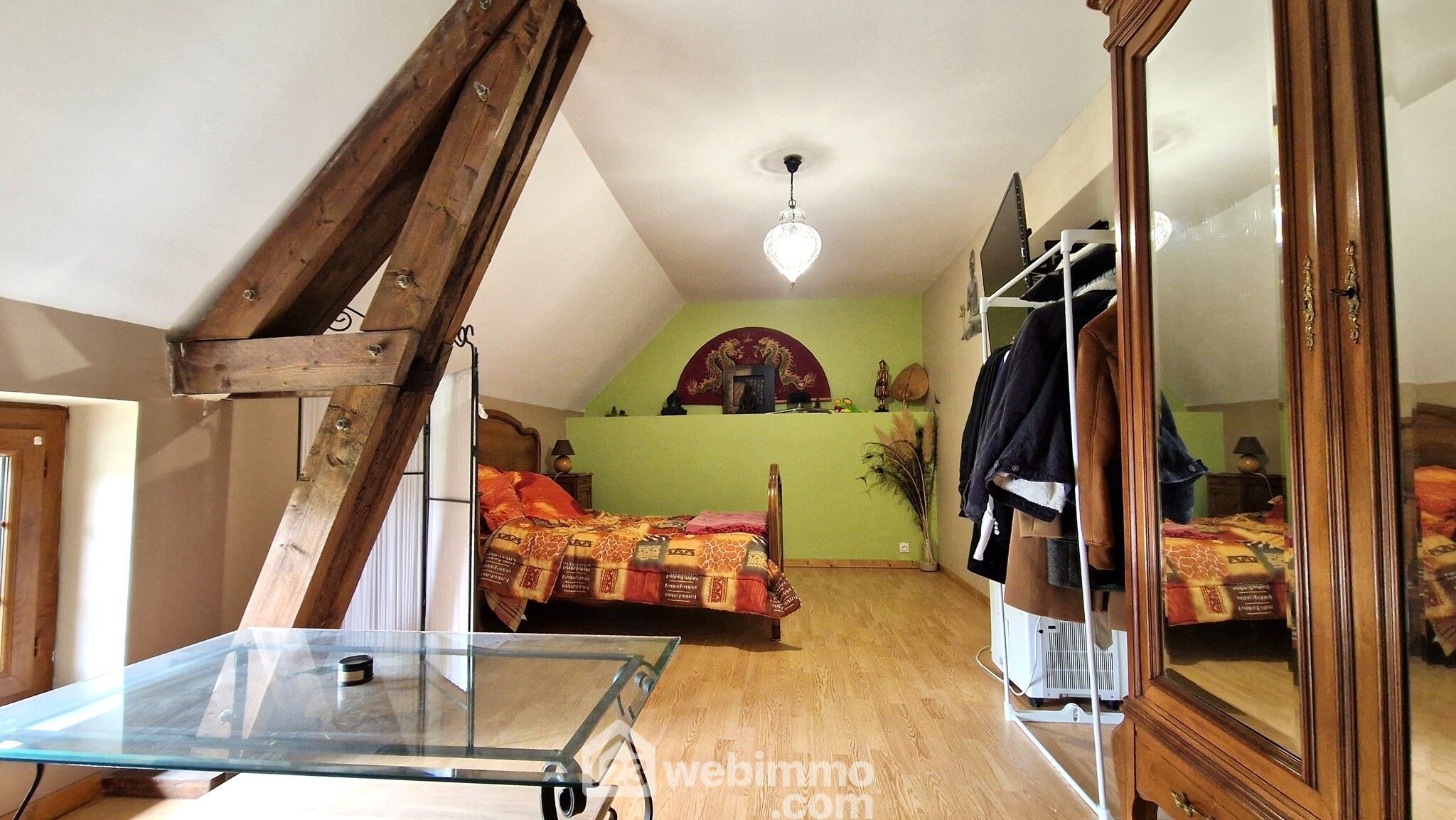 À l'étage, un palier dessert trois chambres confortables, une pièce d’eau à aménager avec WC, ainsi qu’un grenier de 80 m² offrant un fort potentiel d’aménagement. Les atouts supplémentaires ne manquent pas : garage, deux granges, cave, le tout complété par un système de chauffage performant par pompe à chaleur et une toiture récente.