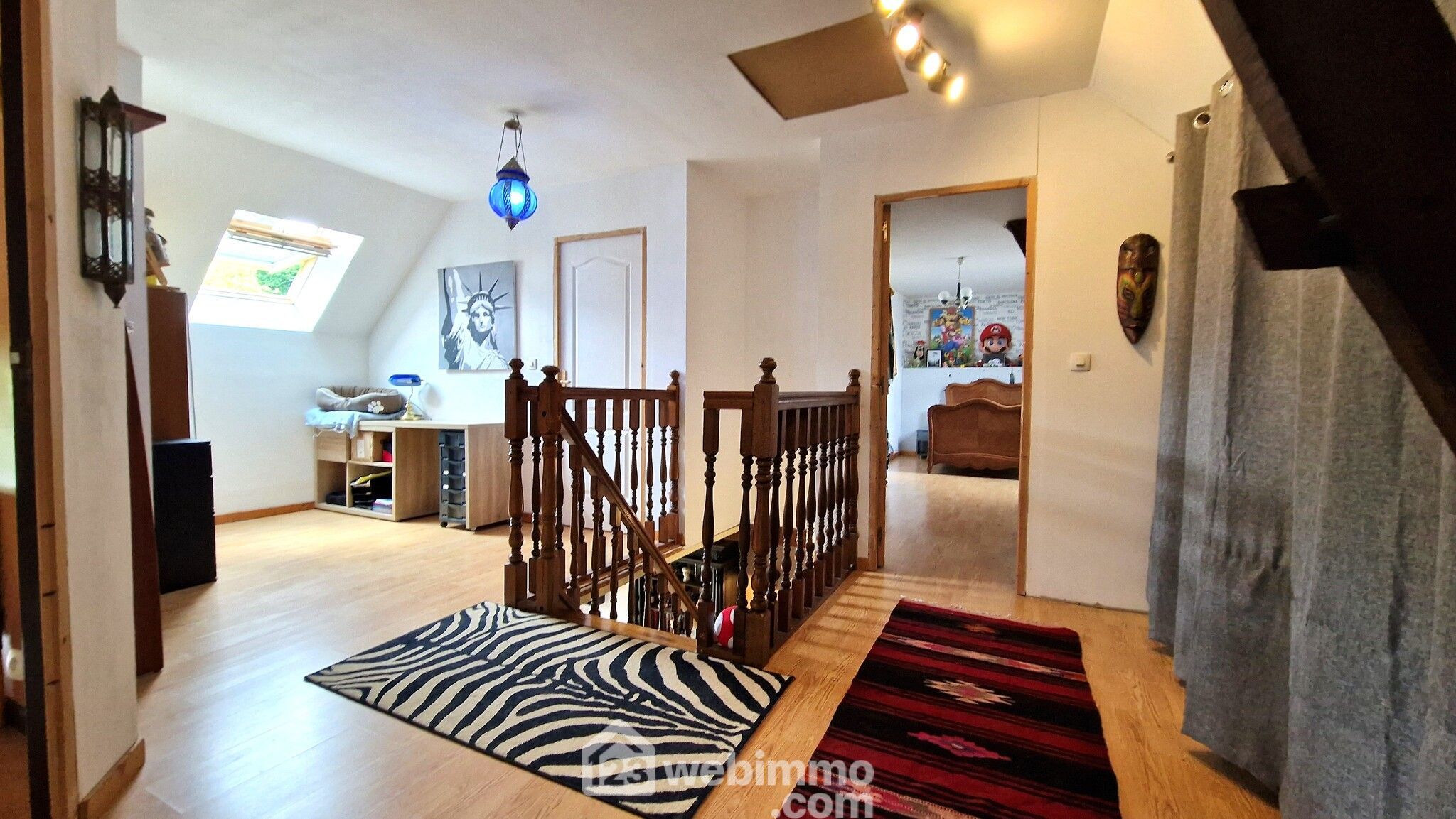 Située dans un environnement paisible, elle offre dès l'entrée un vaste hall desservant un double séjour de 60 m², baigné de lumière et ouvert sur une cuisine fonctionnelle de 13 m². Le rez-de-chaussée comprend également une chambre spacieuse, une salle de bains équipée d’une baignoire et d’une douche, un WC indépendant et un bureau, idéal pour travailler depuis chez soi.