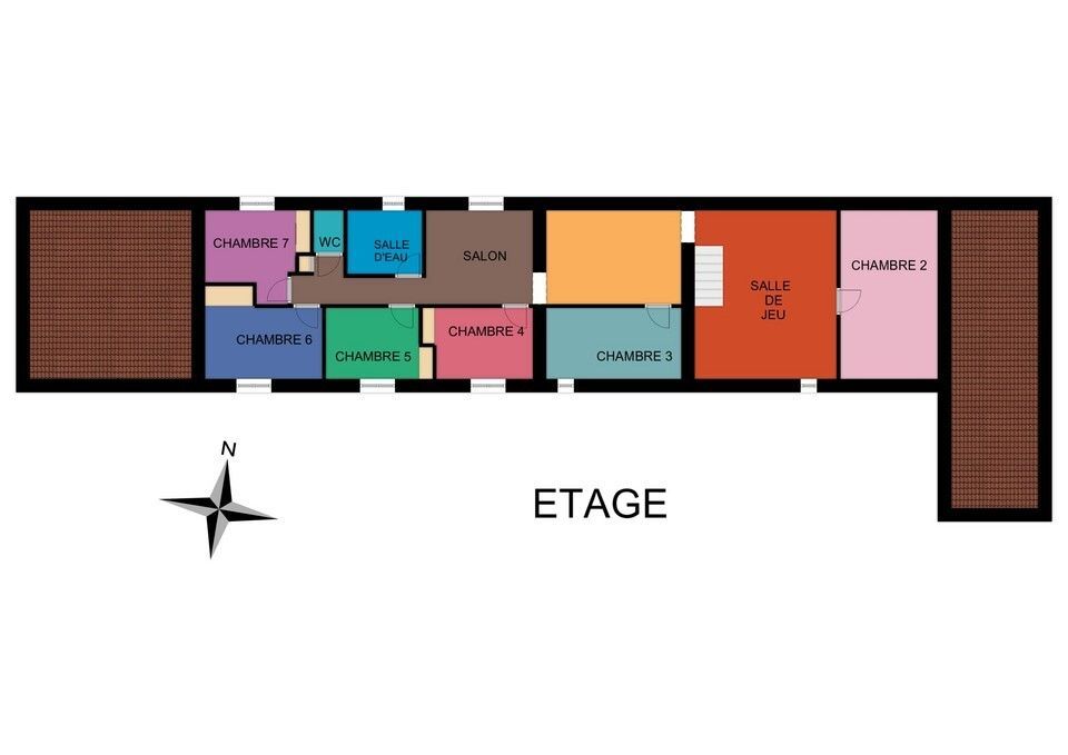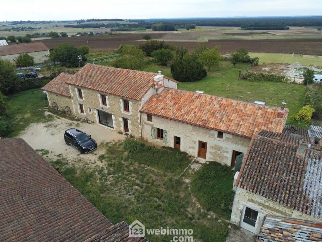 Longère poitevine avec vie de plain-pied, 283 m2 habitables, 11 pièces, 7 chambres, sur terrain de 3353 m2 environ.