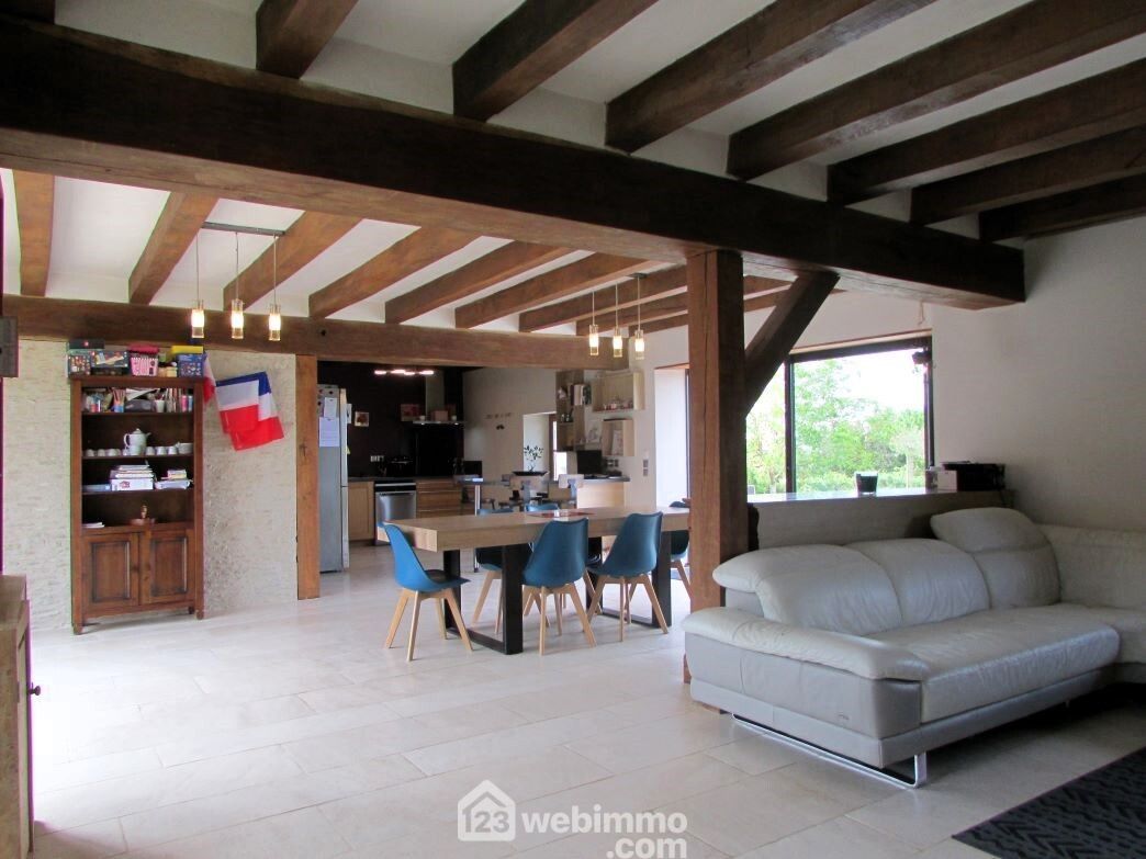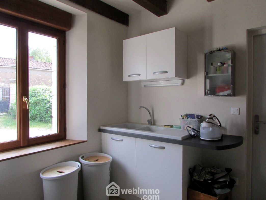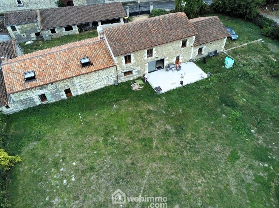 86420 Verrue, dans un hameaux à proximité de l'axe Loudun - Poitiers. Longère rénovée avec dépendances pour stockage ou à réhabiliter (environ 75 m2 de plain-pied). Au rez-de-chaussée : cuisine aménagée ouverte sur un grand séjour (68 m2), salon, WC, buanderie avec accès au double garage, dégagement, chambre avec WC et salle d'eau privative, chaufferie, terrasse. A l'étage : salle de jeu, grand dégagement, un salon, 6 chambres, une salle d'eau et un WC séparé. A l'extérieur : plusieurs dépendances, un four à pain, puits et cabane de jardin. Terrain clôturé avec une partie jardin derrière la maison. Au calme, panorama dégagé, chauffage au sol, pierre de bourgogne, tomette, 2 baies vitrées de 3,2 m, etc . Une rénovation exceptionnelle, prête à habiter et encore du potentiel.