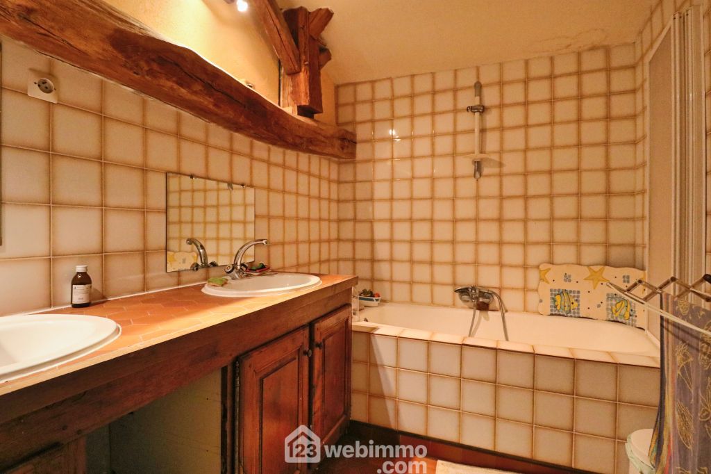 Au rez-de-chaussée, entrée, cuisine de 43 m2 avec cheminée ouverte, salon/séjour de 44 m2 avec poêle à bois, 2 chambres de 11 et 20 m2, salle d'eau, WC, cellier, buanderie et chaufferie.