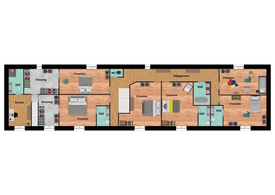 Ce niveau offre un aménagement modulable selon vos besoins (bibliothèque, salle de jeux...).