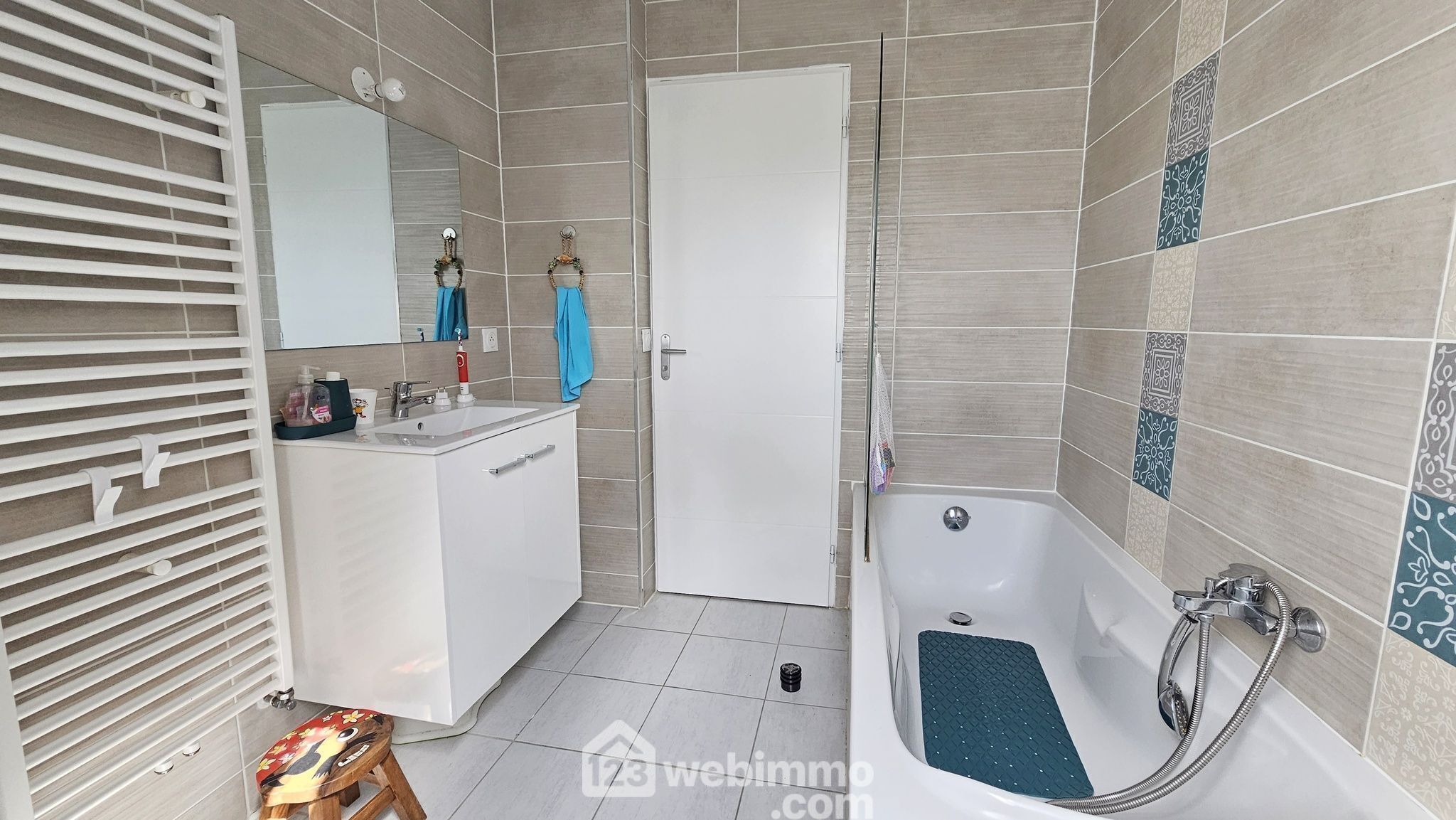 À l’étage, vos enfants ou vos invités disposeront de deux chambres, d’une salle de bains et d’un WC séparé.