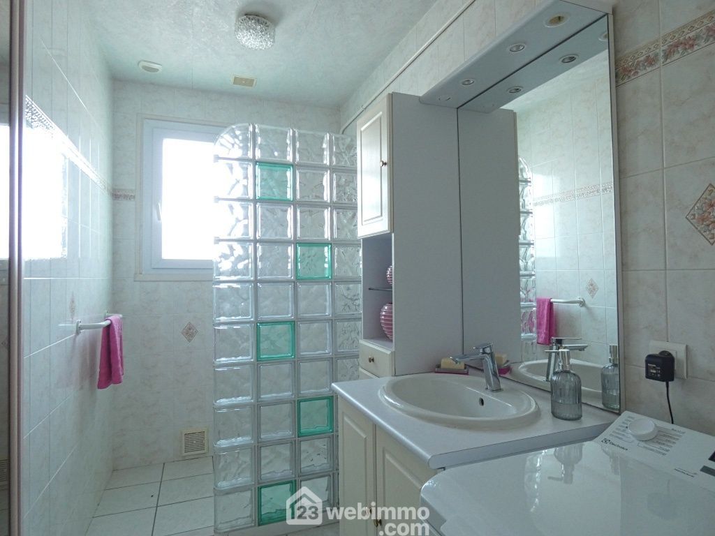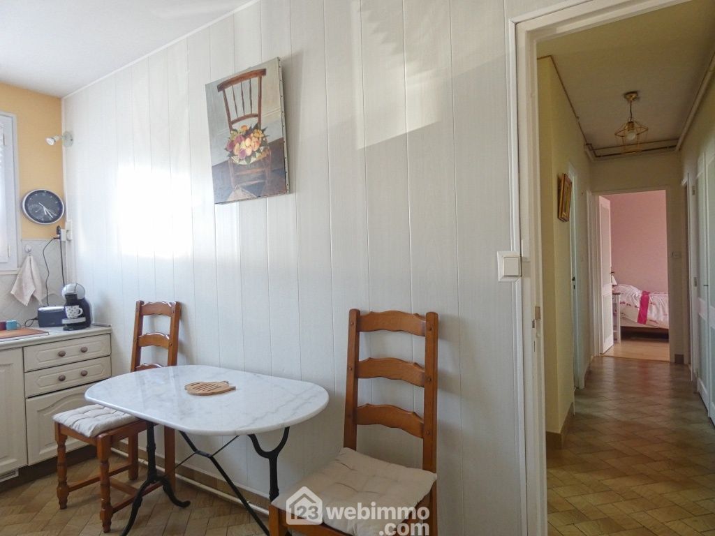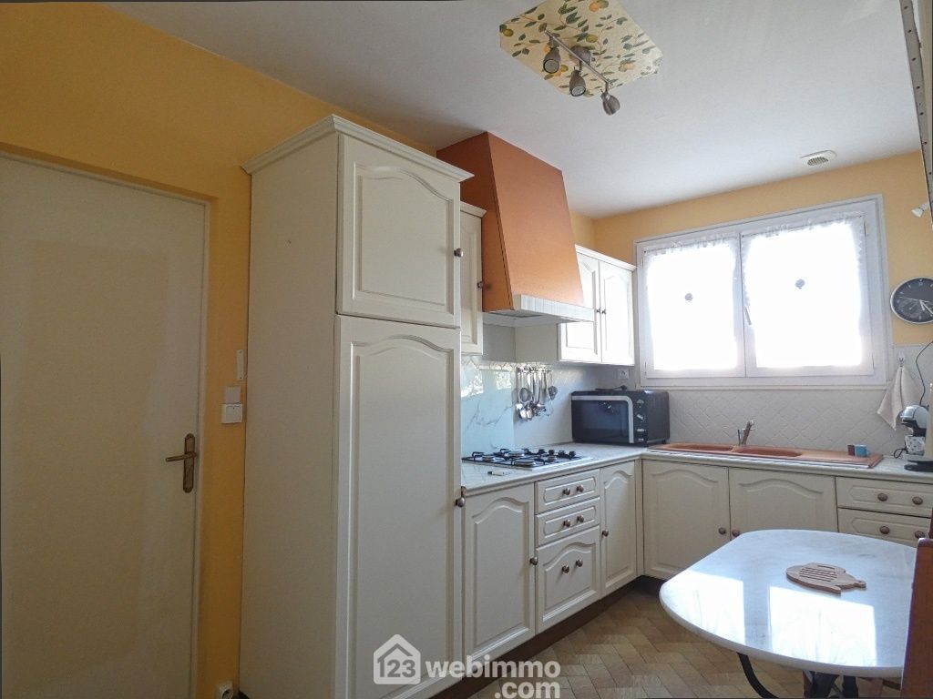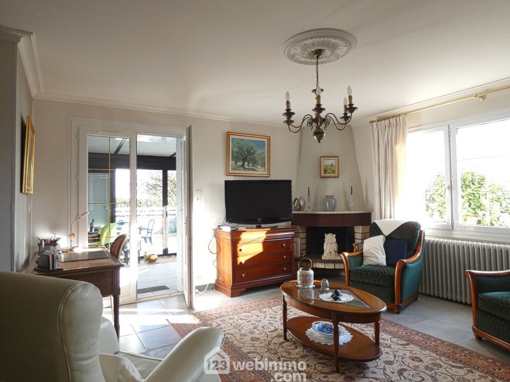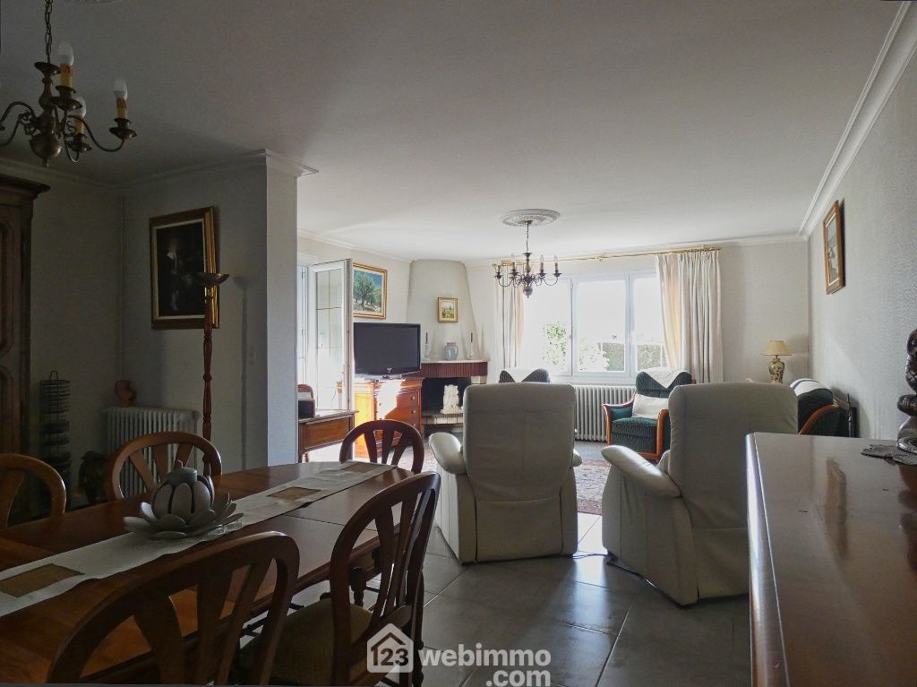 Entrée, cuisine aménagée et équipée (8,5 m2), arrière-cuisine avec placards, salon-séjour (41 m2), 3 chambres (de 9 à 10 m2), salle d'eau avec douche italienne et grand placard de rangement, WC. Véranda (14,50 m2). Garage de 20 m2, cave enterrée de 22 m2 (accès très facile), terrasse, jardin avec abri.