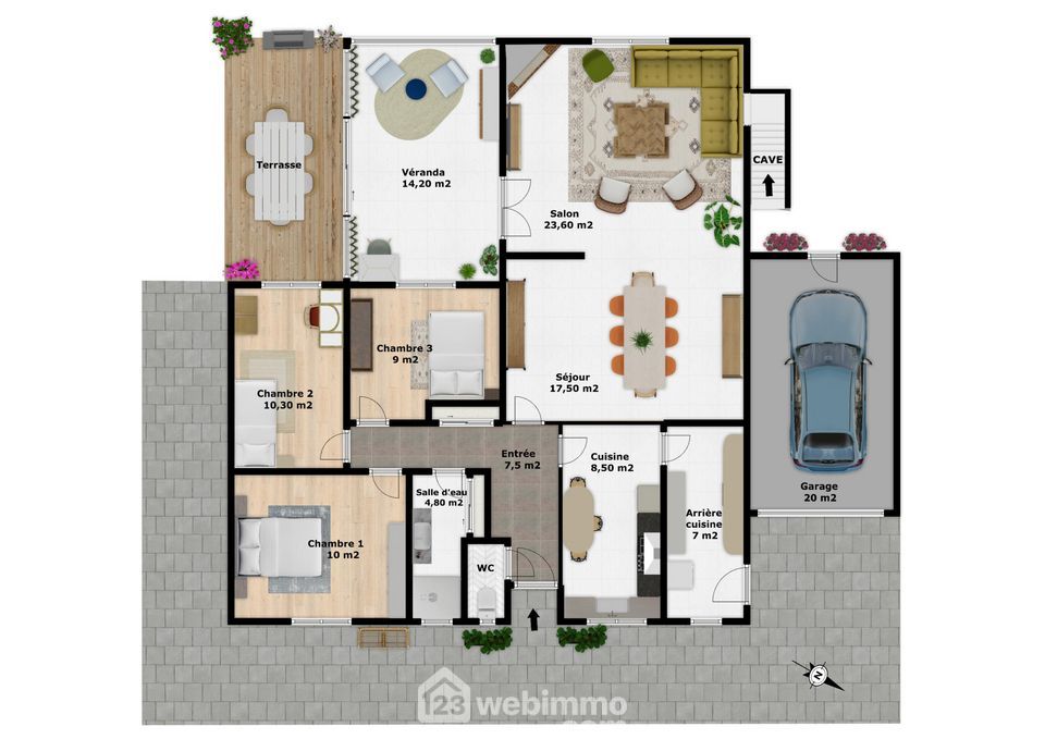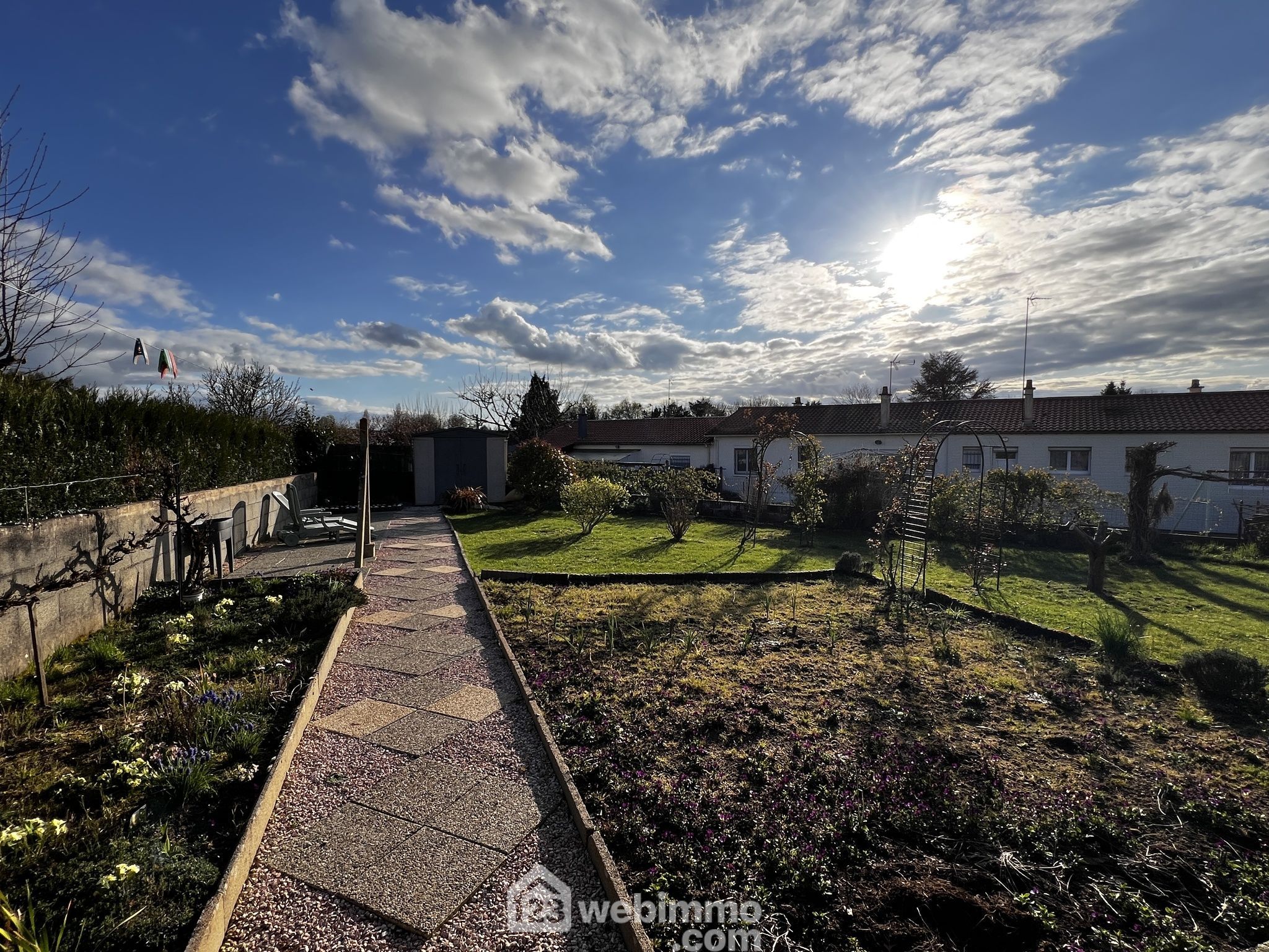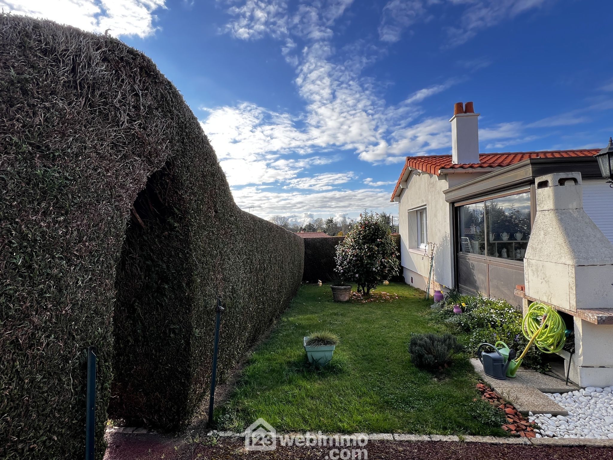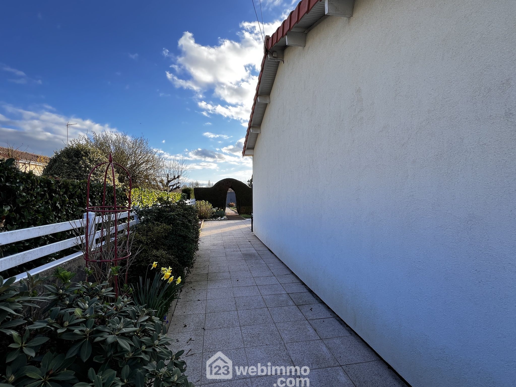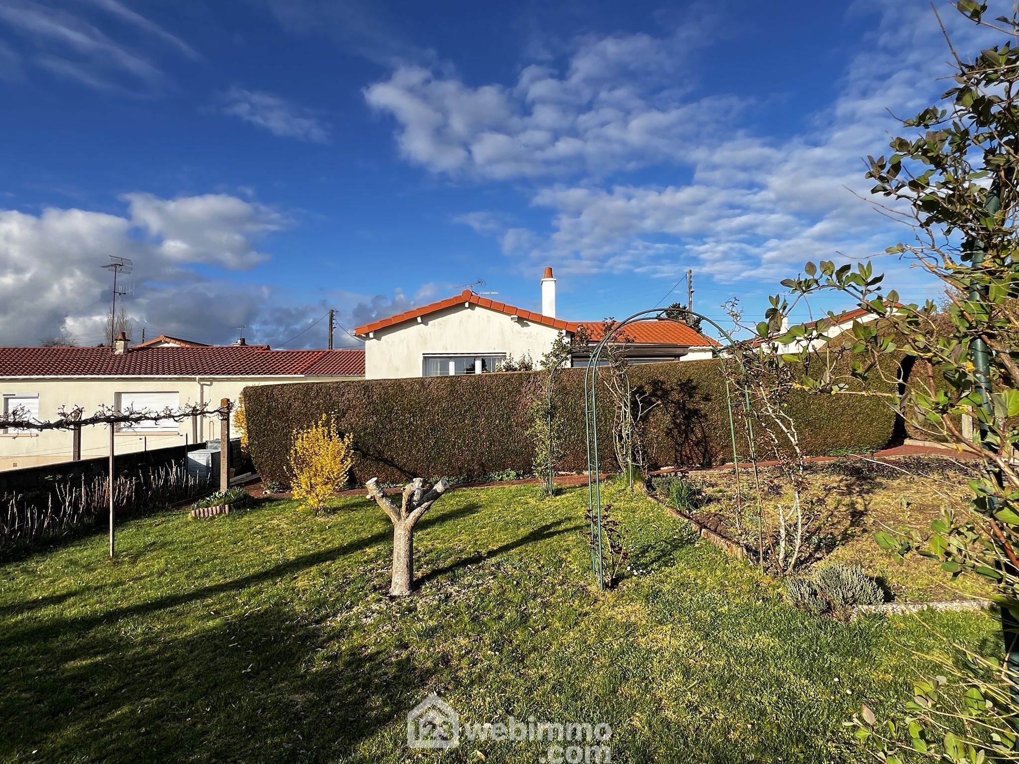 Pavillon de plain-pied, 100 m2 habitables, 4 pièces, 3 chambres, garage, sur un terrain de 650 m2.